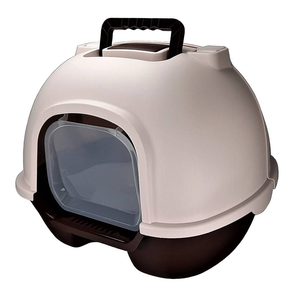 • главной отличительной чертой данной модели является то, что для уборки туалета теперь не надо снимать всю верхнюю крышку целиком или пытаться дотянуться через окошко, достаточно просто открыть заднюю часть крышки и весь лоток доступен для уборки, в закрытом состоянии задняя крышка фиксируется совком с крючком, что не позволит животному открыть крышку самостоятельно, совок входит в комплект;