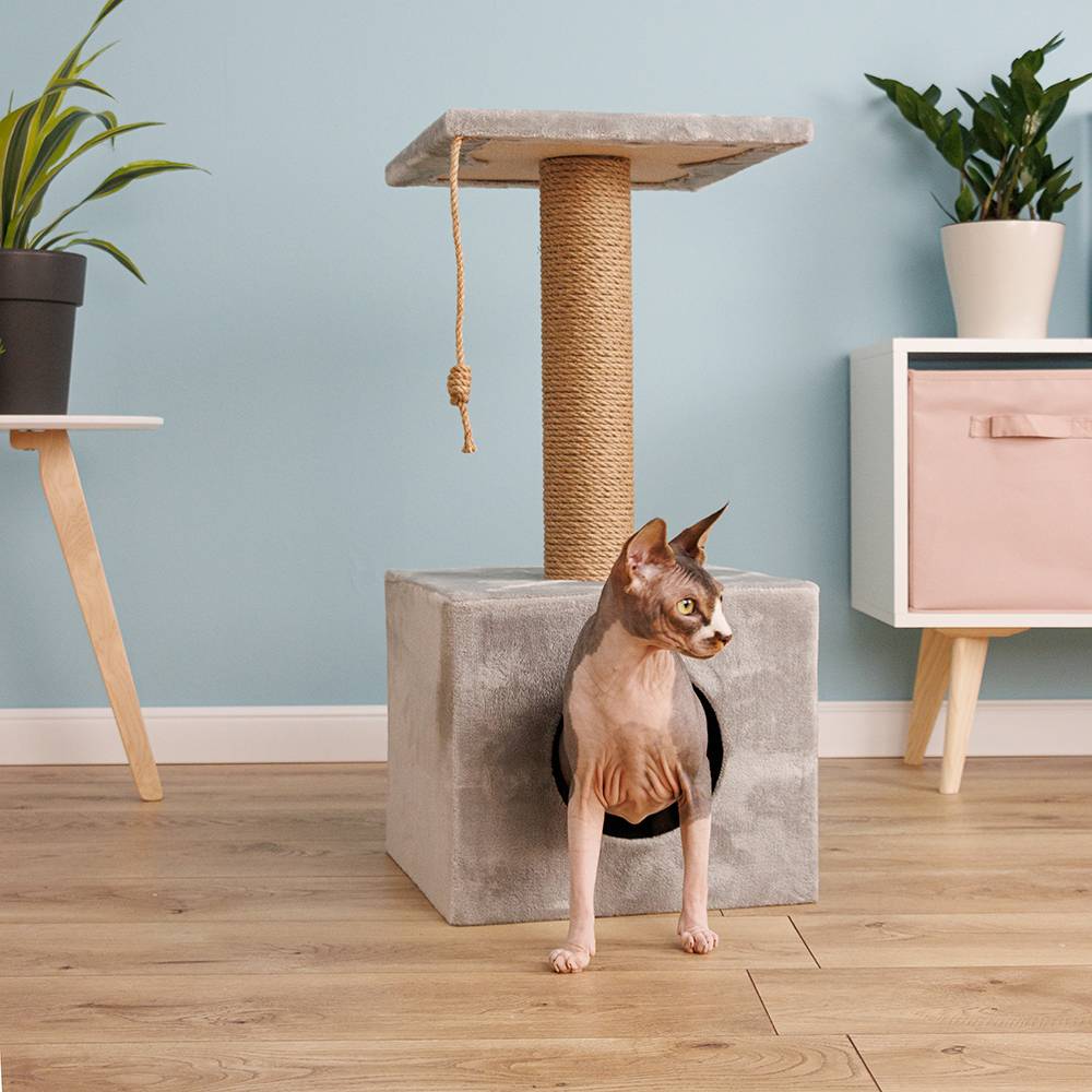 Дом-когтеточка Куб с площадкой развлечет питомца и позволит ему удовлетворить свои естественные инстинкты.