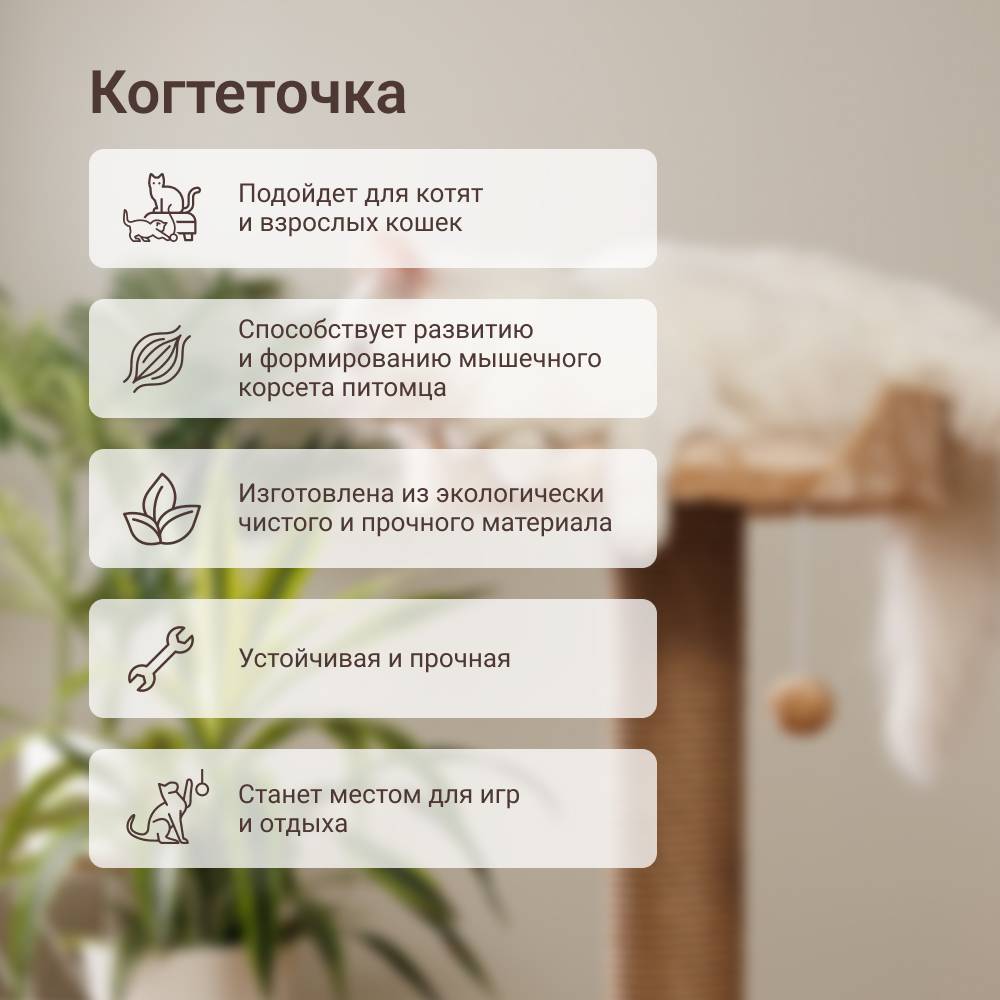 Когтеточка Дельта с лежанкой от бренда Домоседы отвлечёт вашего кота от нежелательных игр с предметами интерьера и удовлетворит его природные инстинкты.
