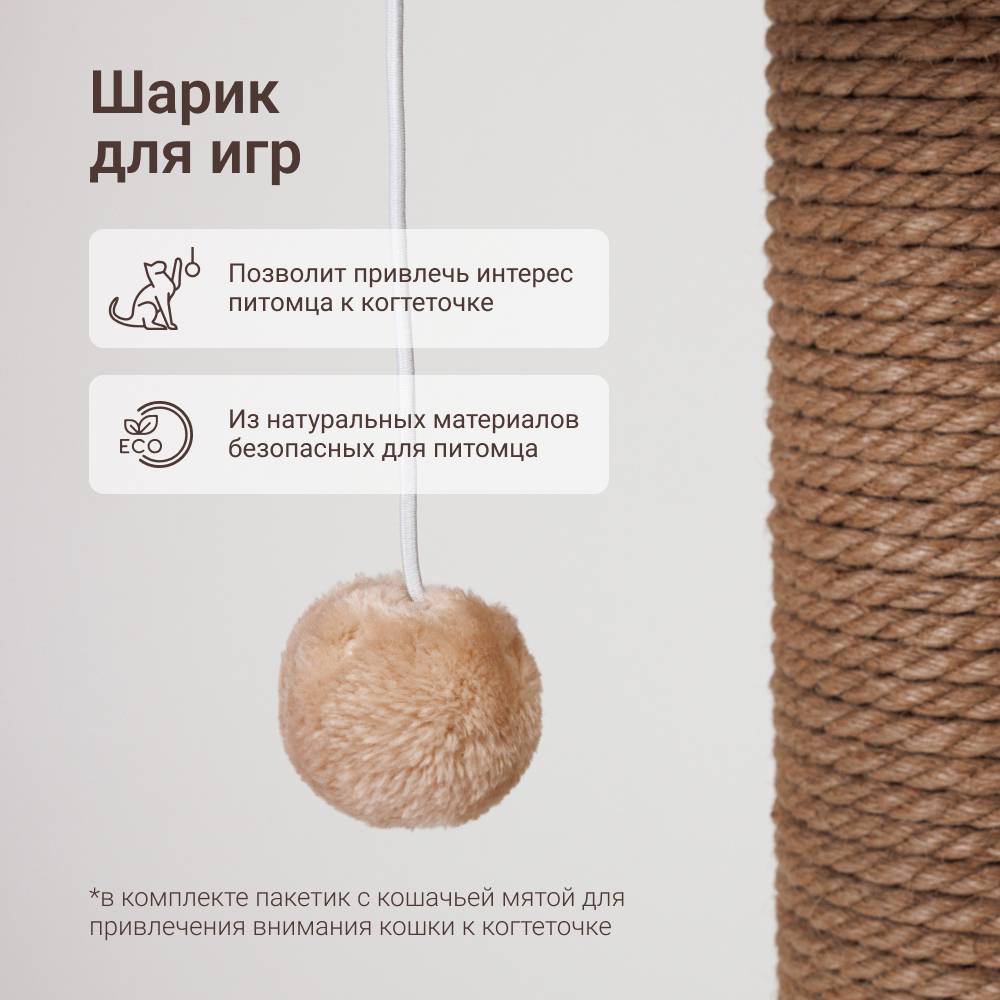 - В комплекте пакетик с кошачьей мятой для привлечения внимания кошки к когтеточке.