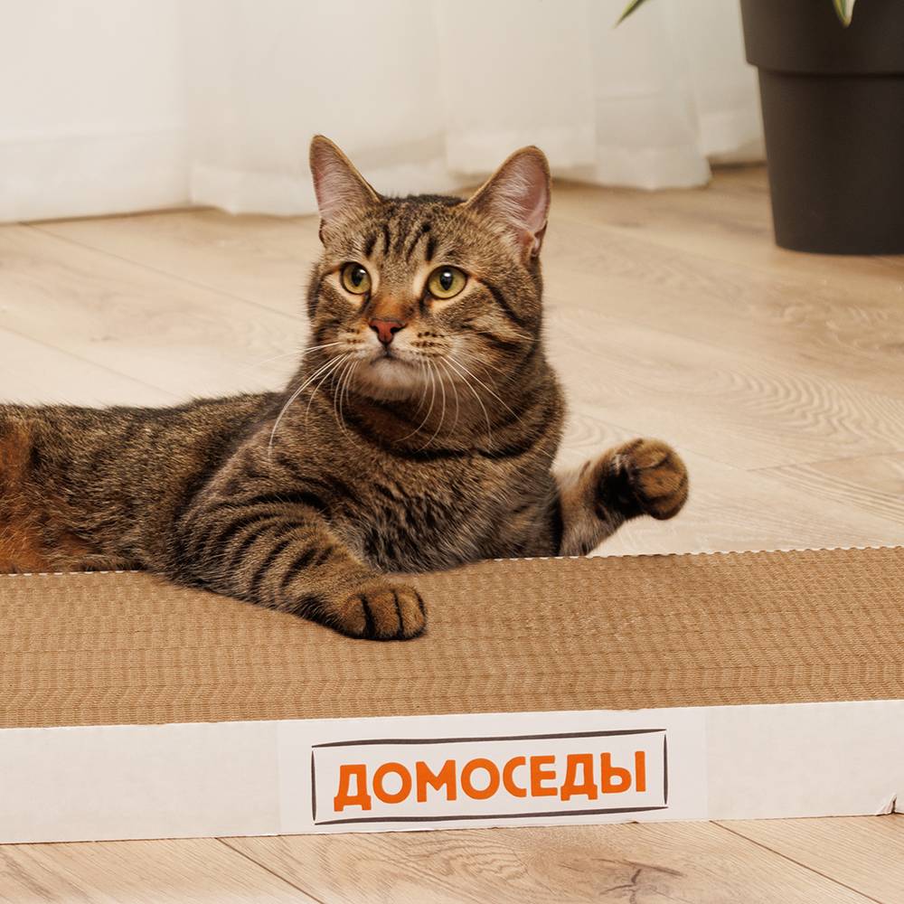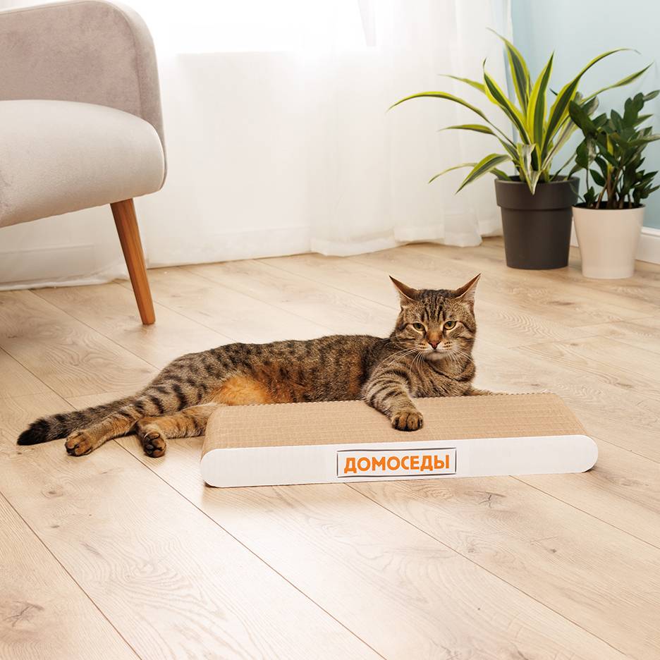 Когтеточка FLAT mini из гофрированного картона от бренда Домоседы – это изделие для игр, отдыха и затачивания когтей. Вашему коту точно понравится!