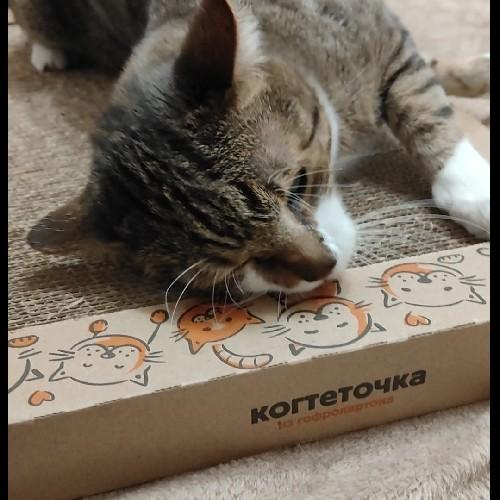 Нам данная когтеточка очень нравится, нашей кошке хватает надолго, при её очень активном подходе. Из всех нами перепробованных картонных когтеточек-эта самая долговечная.Комментарий