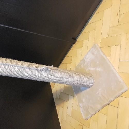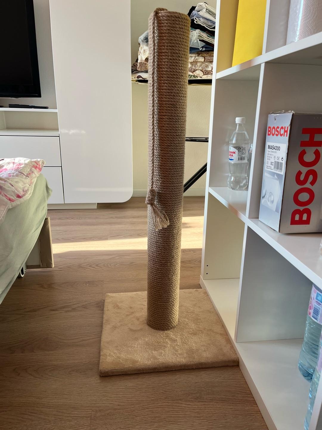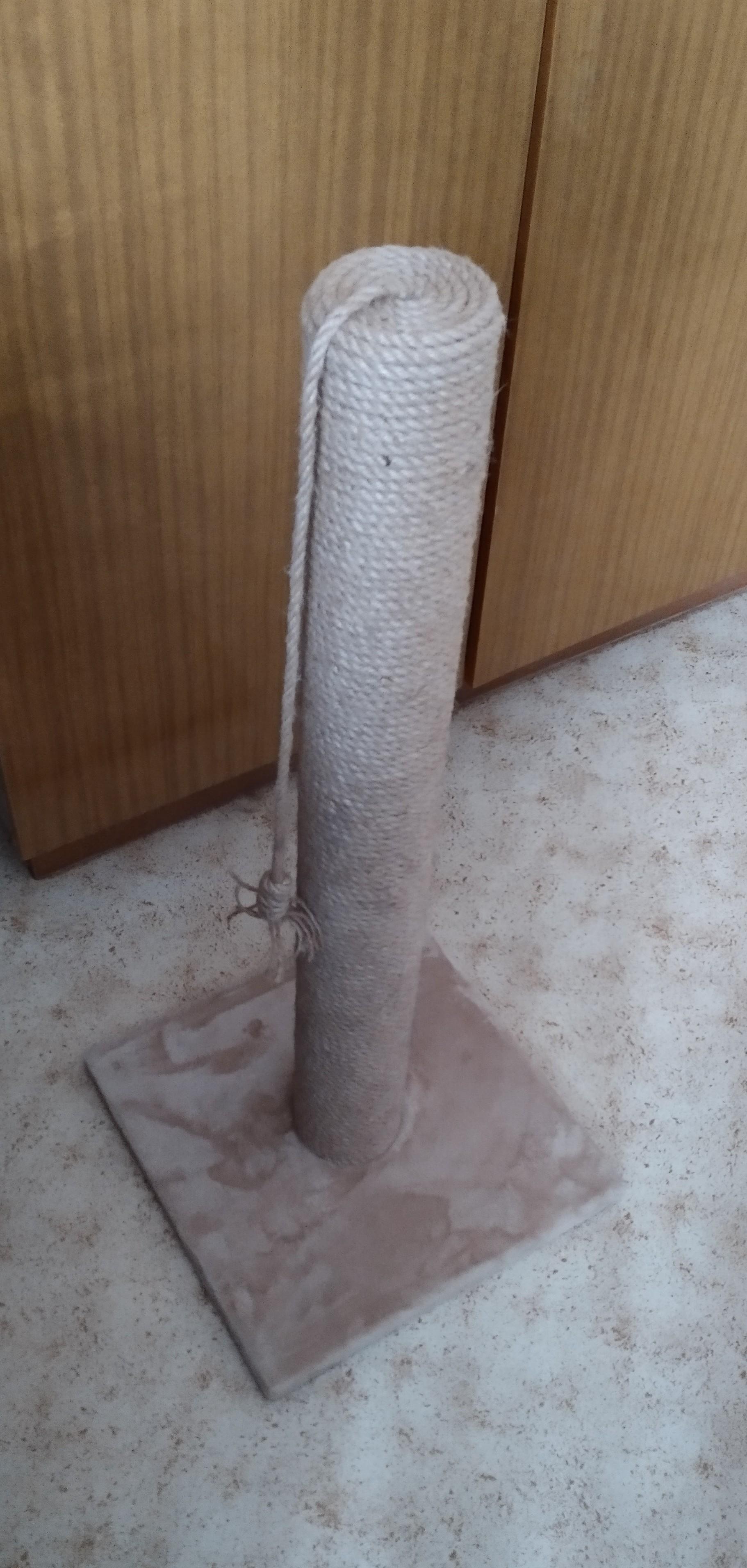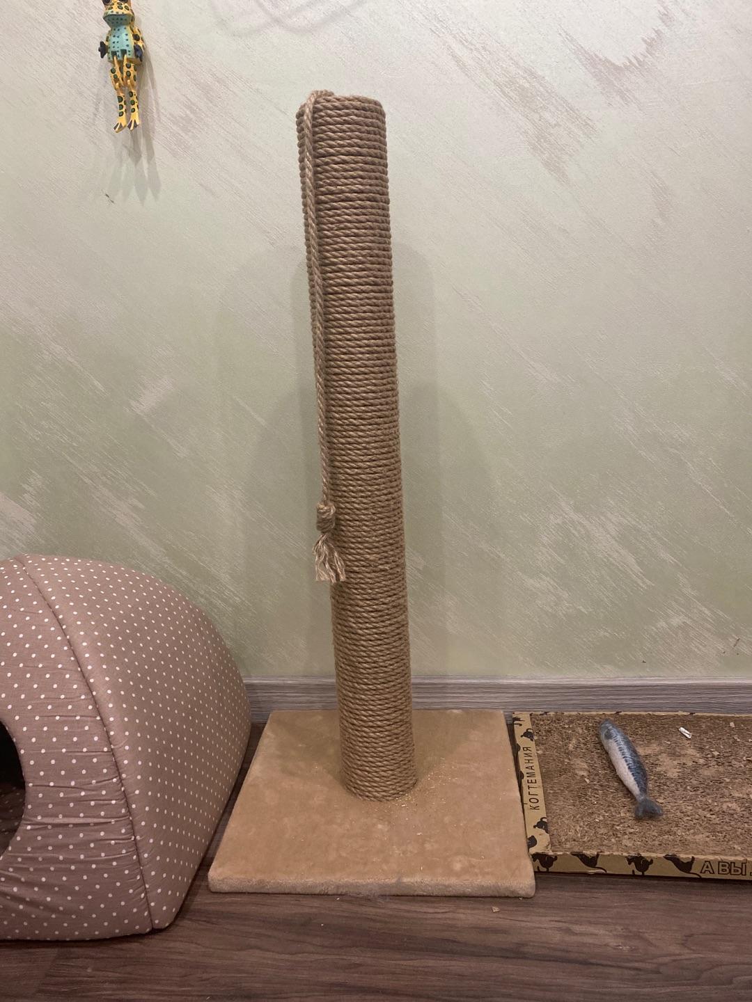 Когтеточка большая по высоте и маленькое основание, очень компактная, устойчивая, качественная намотка джутового каната.Комментарий
