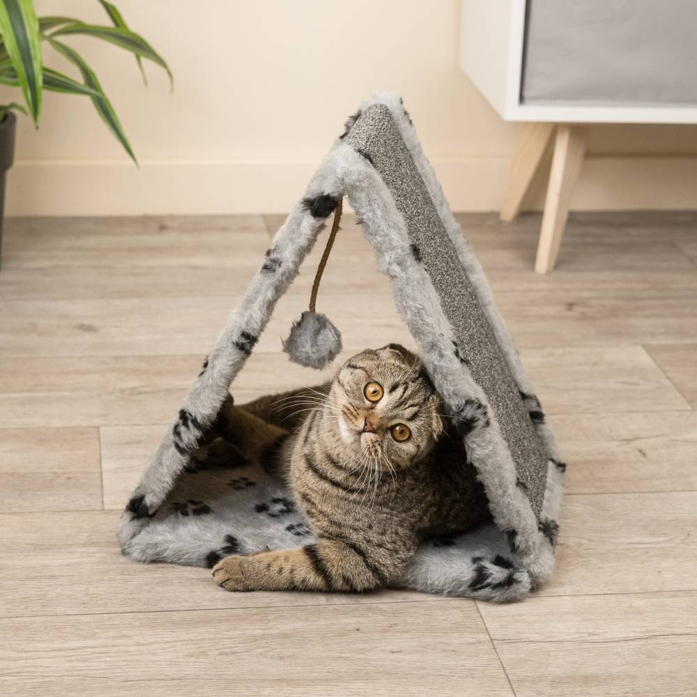 Когтеточка-шалаш с игрушкой от бренда Домоседы развлечет питомца и позволит ему удовлетворить свои естественные инстинкты.