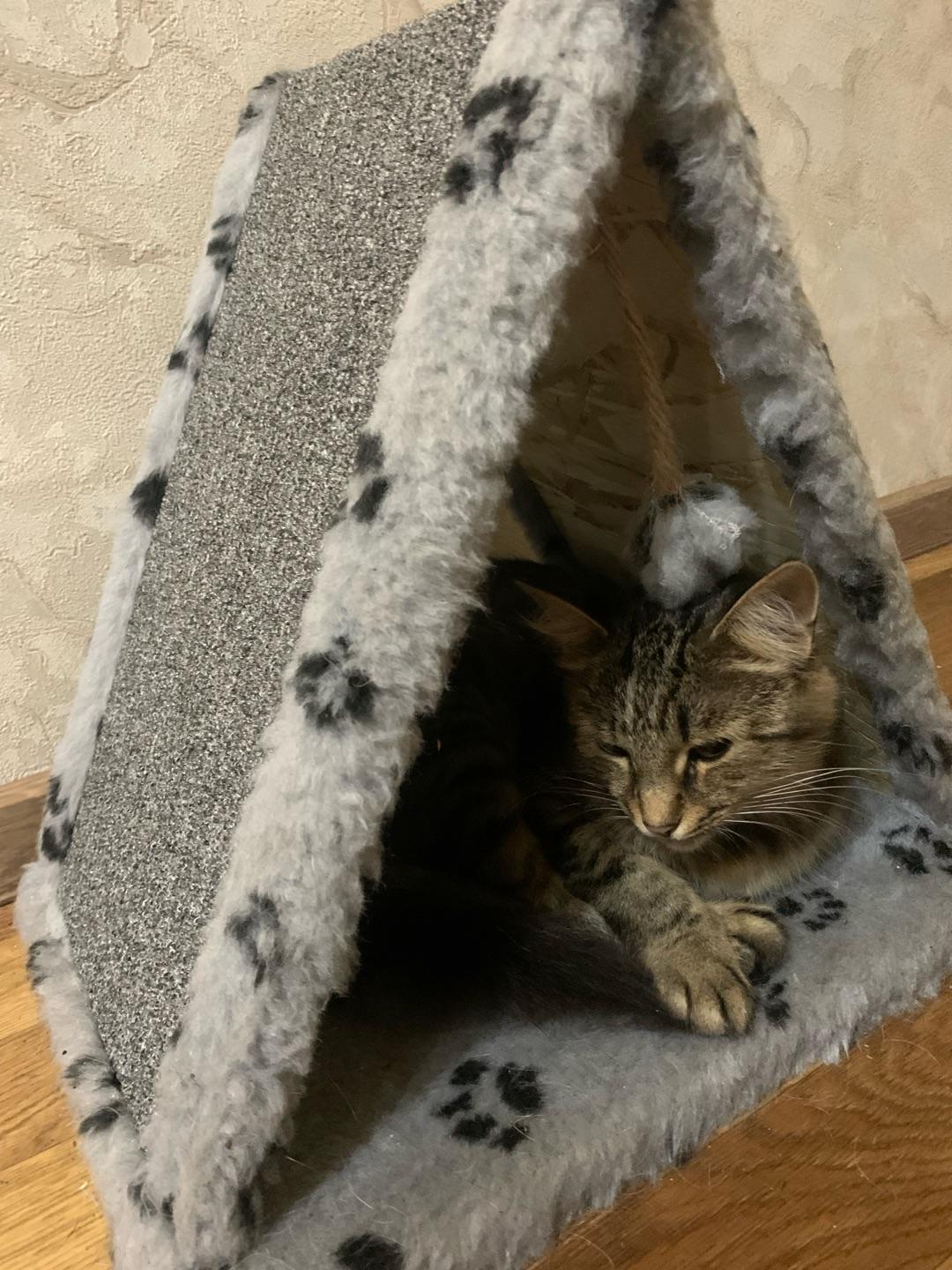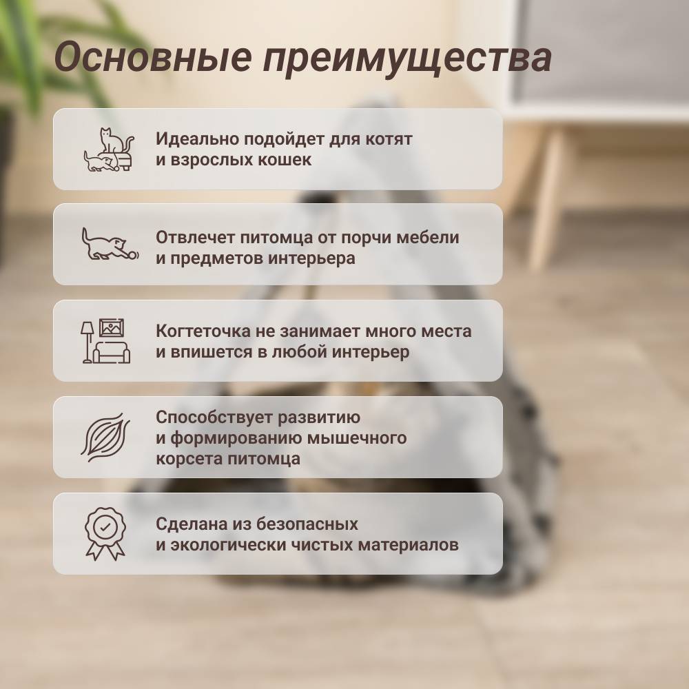 Когтеточка-шалаш с игрушкой от бренда Домоседы развлечет питомца и позволит ему удовлетворить свои естественные инстинкты.