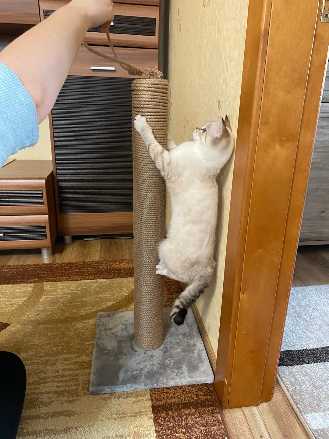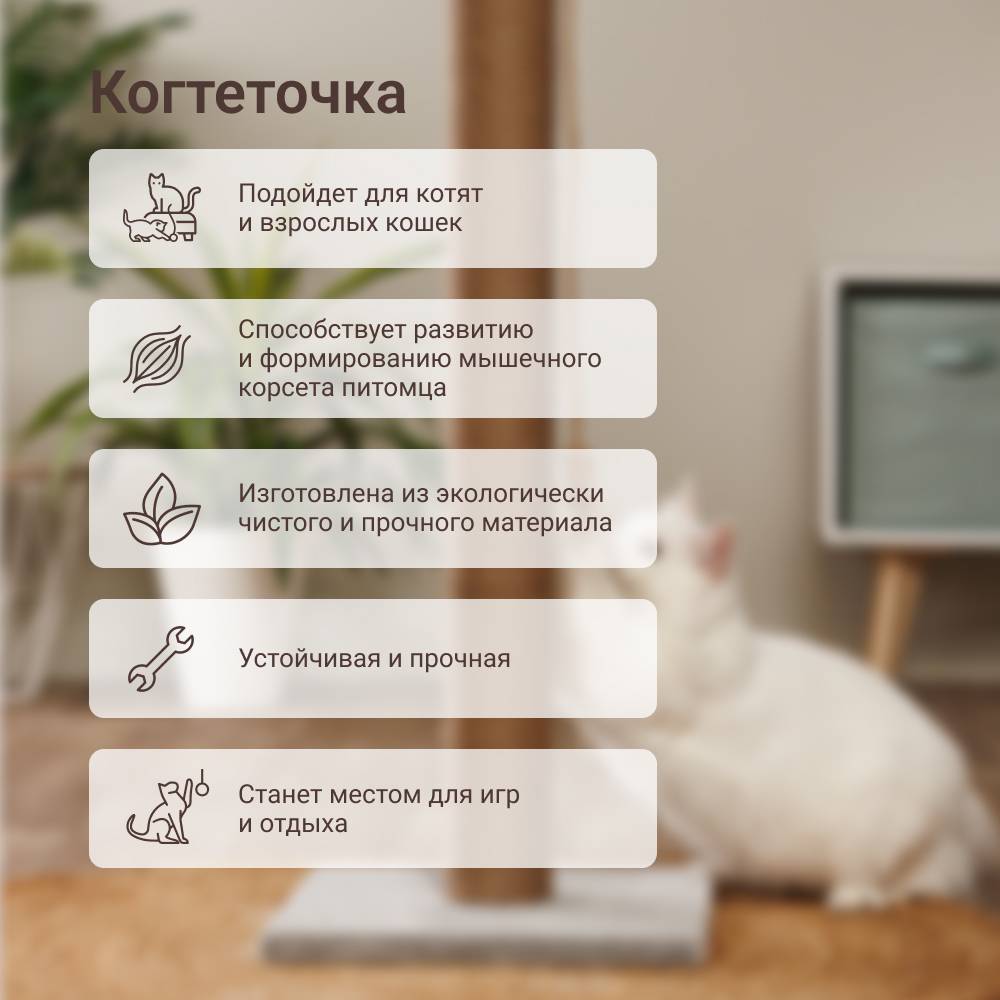 Когтеточка-столбик от бренда ДОМОСЕДЫ отвлечёт вашу кошку от нежелательных игр с предметами интерьера.