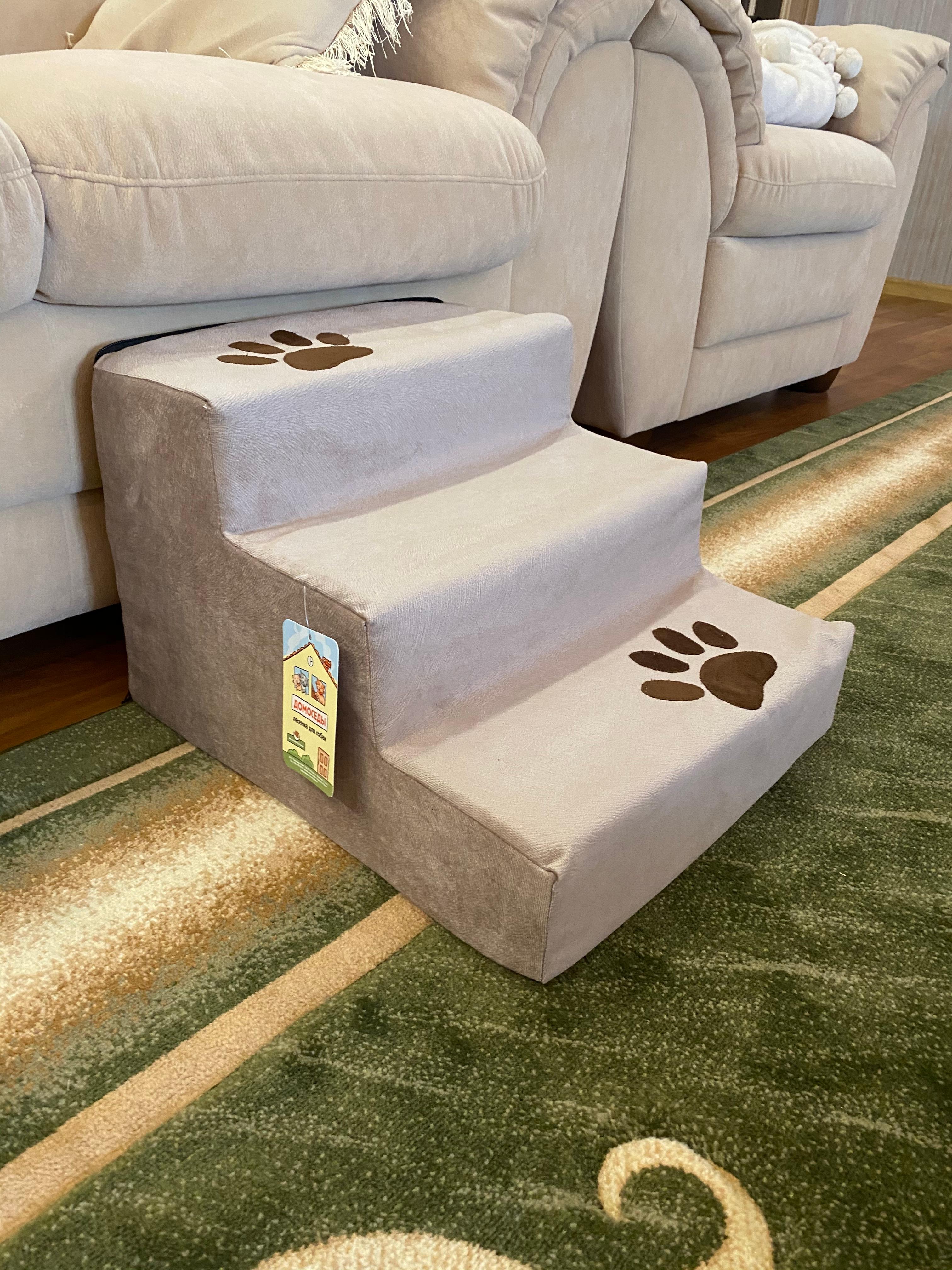 Лесенка для собак мелких пород 45х39х30 см, бежевая, поролон, съемный чехол.