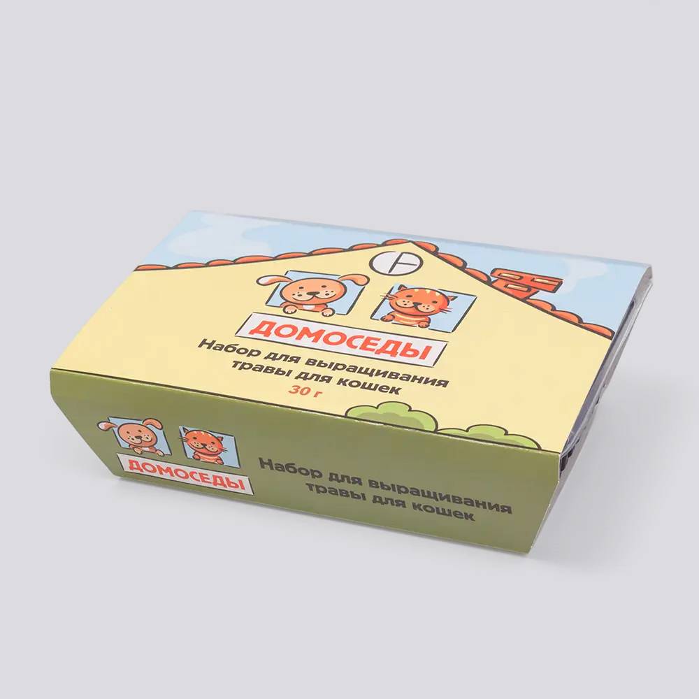 Набор для выращивания травы для домашних питомцев от бренда Домоседы подойдет для кошек, собак мелких пород, грызунов, птиц.