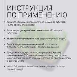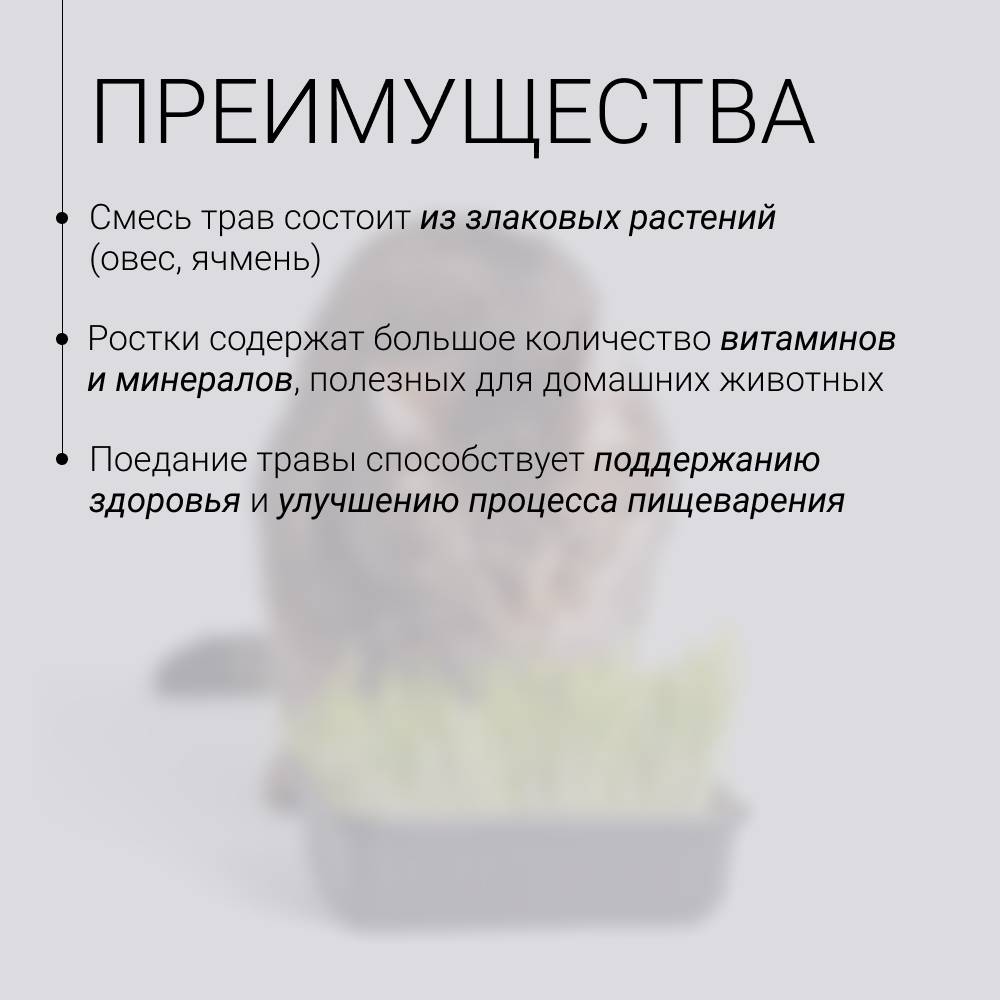 - Внимание! В пищу используются только ростки. Не оставляйте питомца без присмотра, чтобы избежать поедания семян и субстрата.