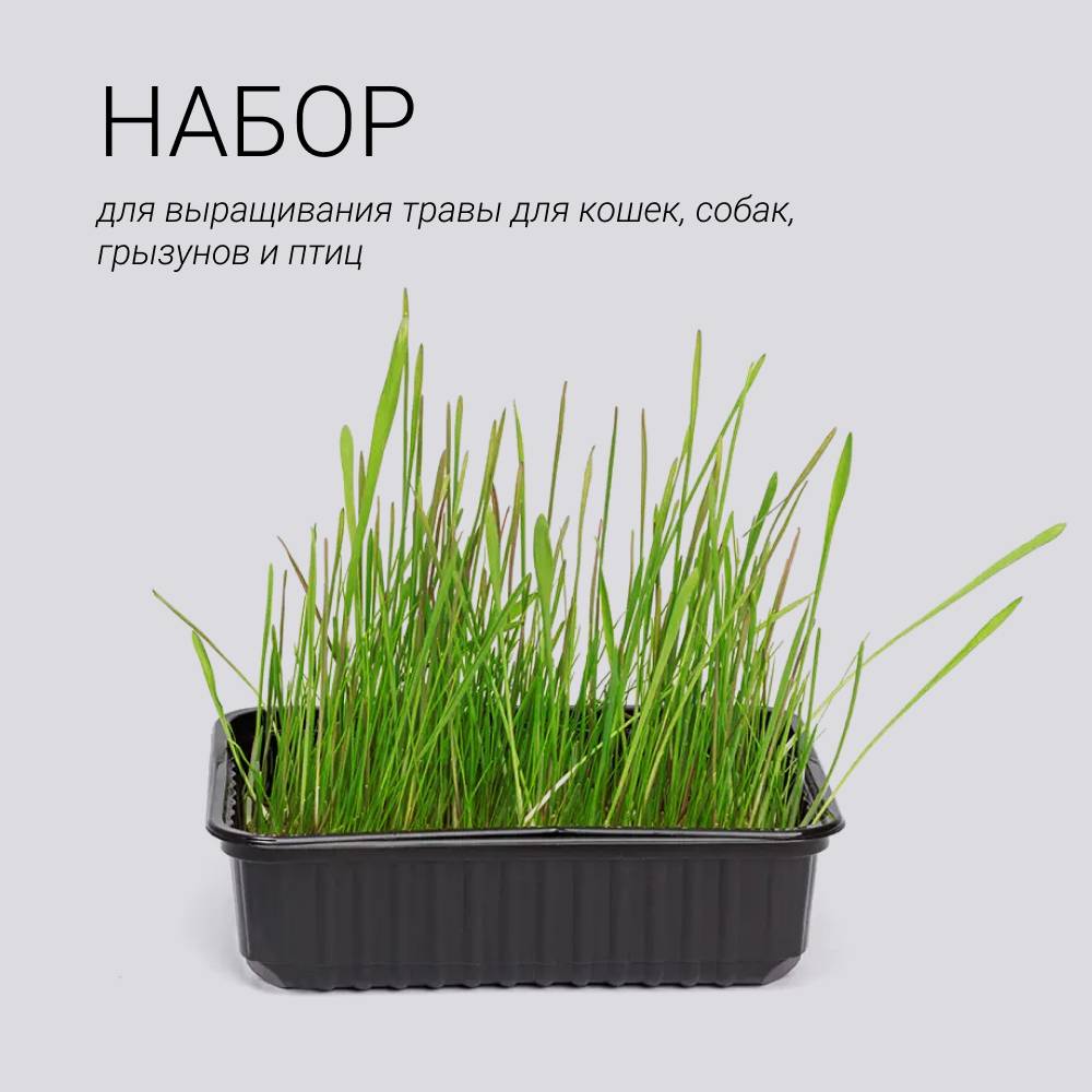 Набор для выращивания травы для домашних питомцев от бренда Домоседы подойдет для кошек, собак мелких пород, грызунов, птиц.