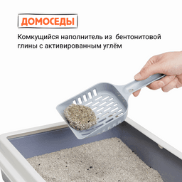 Комкущийся наполнитель с углём для туалета кошек от Домоседы изготовлен из натуральной бентонитовой глины с активированным углём – для максимального поглощения влаги и контроля запаха.