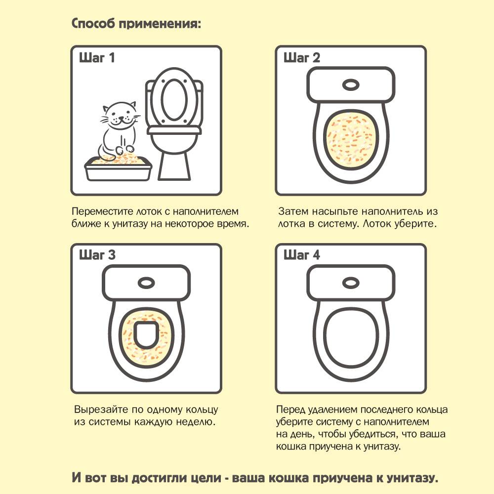Система приучения кошек к унитазу от бренда Домоседы избавит вас от необходимости приобретать наполнитель, а также от неприятного запаха, разбросанной на полу грязи из лотка и от дополнительных трат.