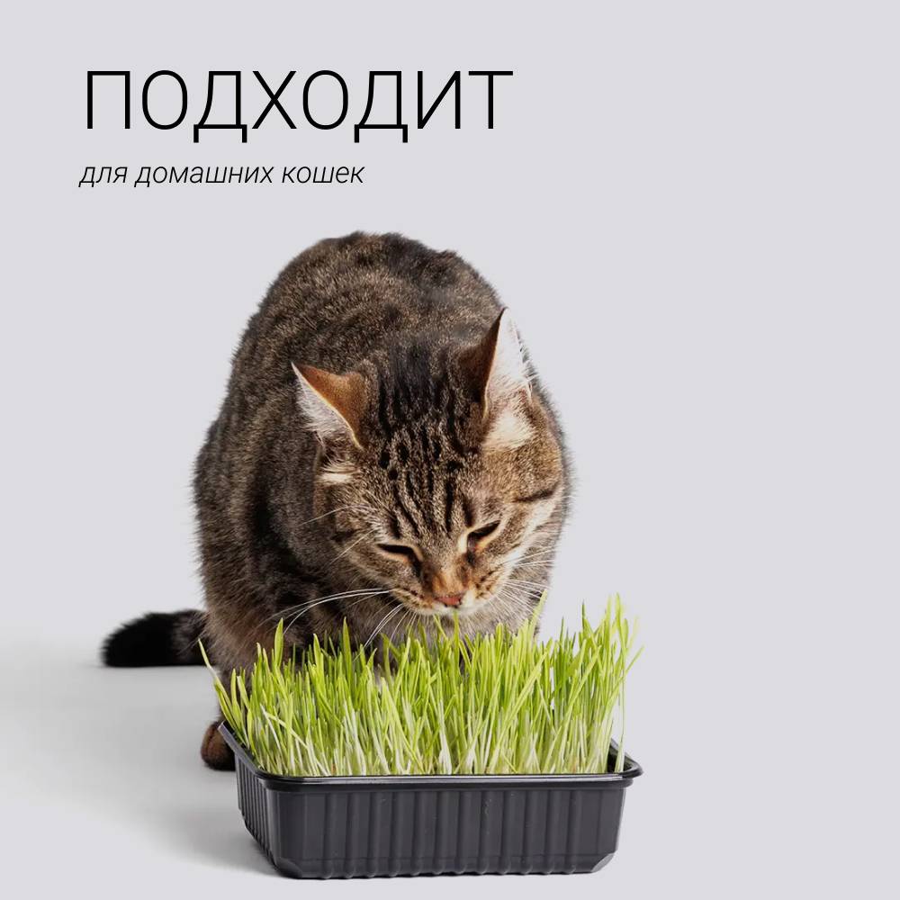Семена для выращивания травы от бренда Домоседы подходят для домашних кошек.