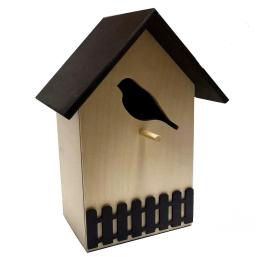 Скворечник для птиц уличный. Преимущества: Изготовлен из высококачественной древесины. С жёрдочкой. Оригинальная отделка. Отверстие в форме силуэта птицы. Прочный, надёжный и комфортный для птиц