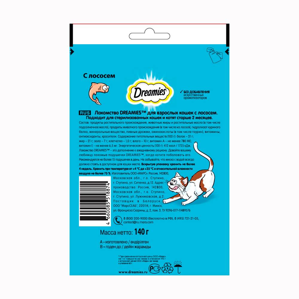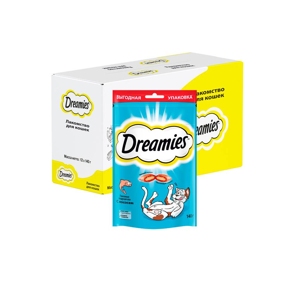 Dreamies Лакомство Подушечки с лососем для кошек, 140 гр.
