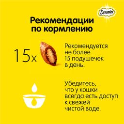 лакомство DREAMIES™ – это дополнение к ежедневному рациону. Давайте вашему любимцу лакомые подушечки DREAMIES™, когда хотите побаловать его. Рекомендуется не более 15 подушечек в день. Не забывайте, что миска с водой всегда должна стоять в доступном для кошки месте. Вскрытую упаковку хранить не более 4 недель.