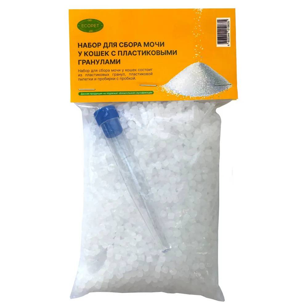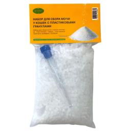 Удобный набор для сбора анализа мочи у кошек состоит из пакета с неабсорбирующими влагу гранулами (250 гр), одноразовой пластиковой пипетки для сбора образцов мочи и пробирки для хранения и транспортировки собранного образца для последующего анализа.
