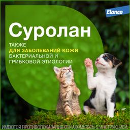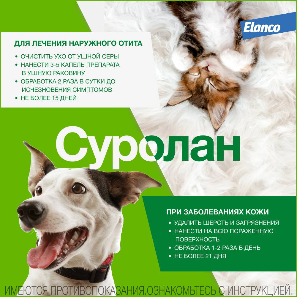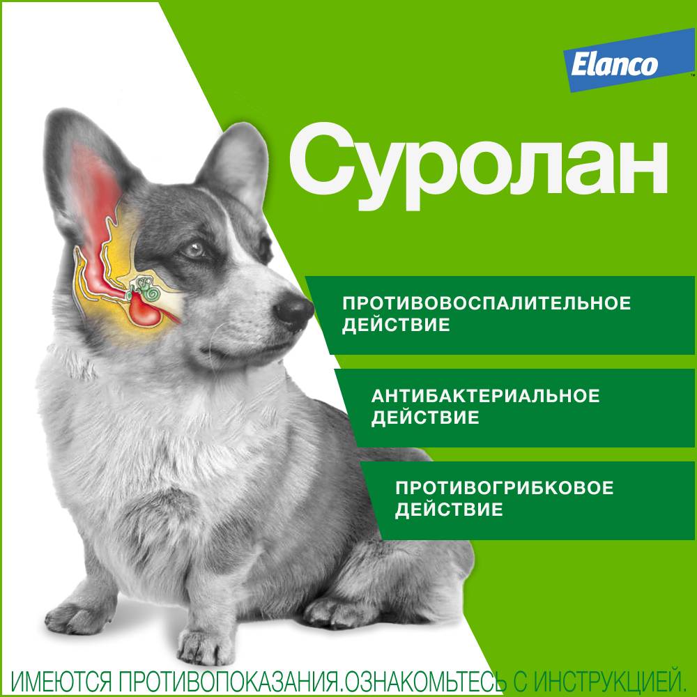 Препарат обладает широким спектром антимикробной и антигрибковой активности, оказывает противовоспалительное и противоаллергическое действие.Суролан – препарат компании Elanco.