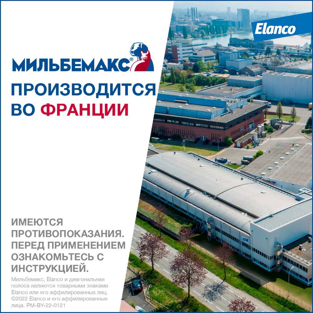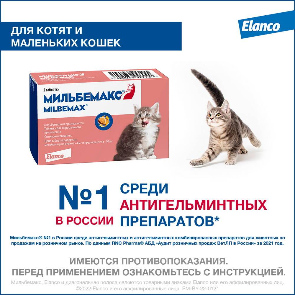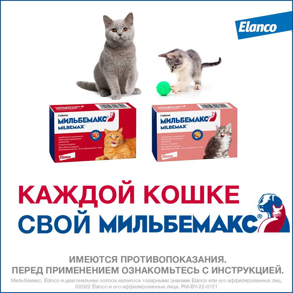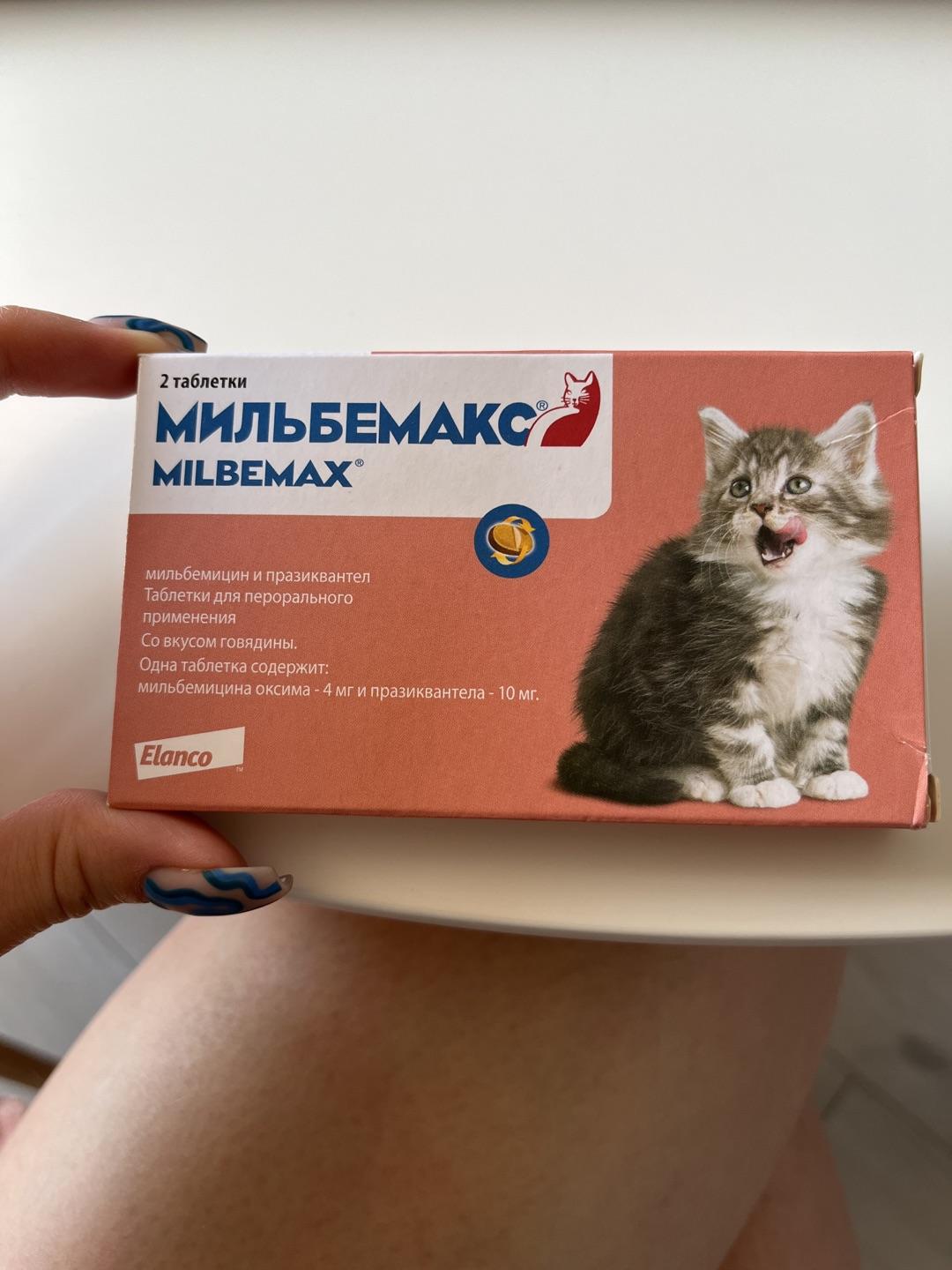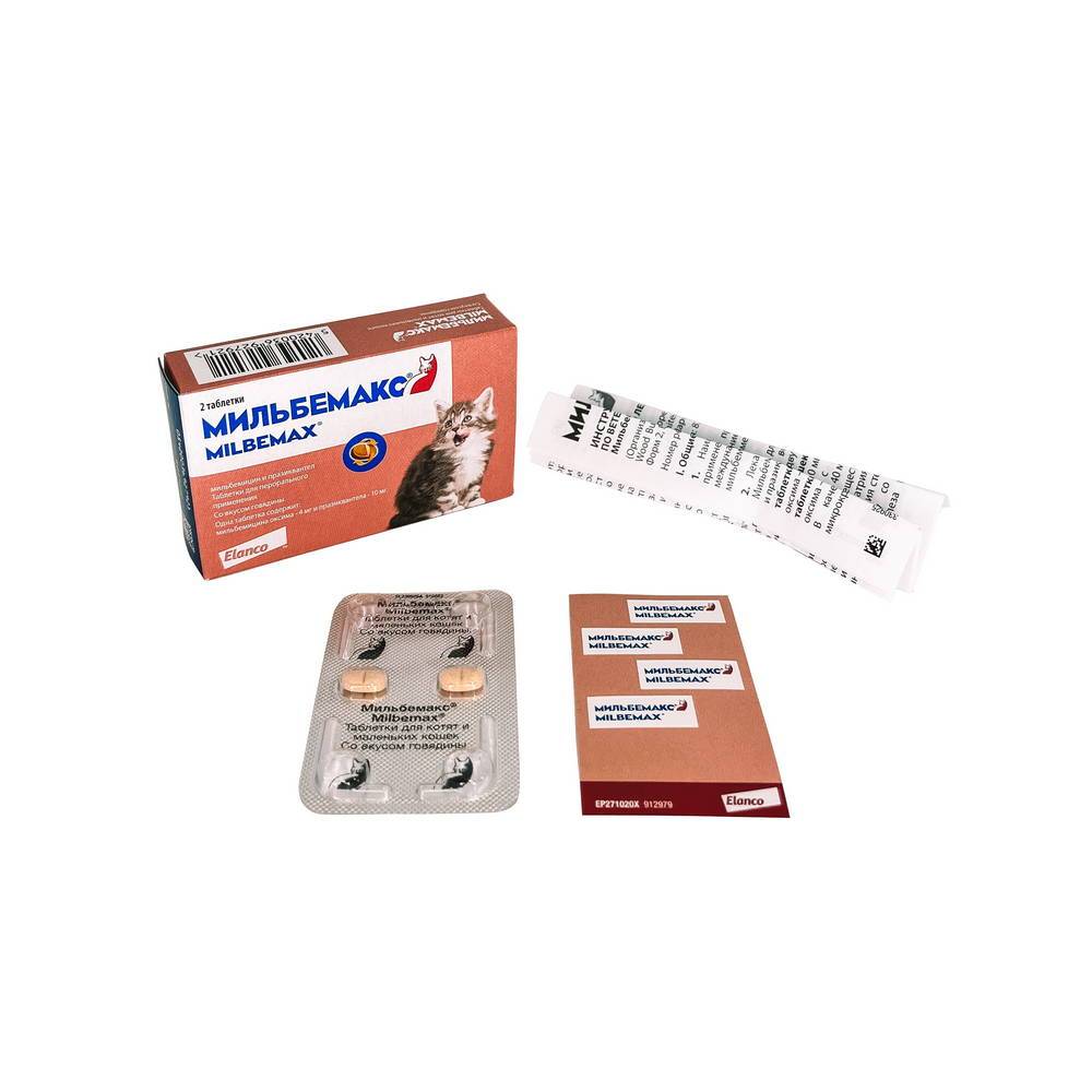 Мильбемакс® имеет маленький размер таблетки с удобной дозировкой по весу животного, его легко давать кошкам: таблетка со вкусом говядины и покрыта оболочкой для маскировки горького вкуса. Мильбемакс® можно использовать для котят с 6-недельного возраста, беременных и кормящих кошек. Производится во Франции.