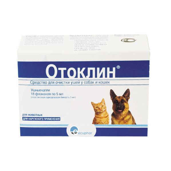 Отоклин содержит кератолитический, размягчающий и увлажняющий агенты, что делает продукт идеальным для гигиены и ухода за наружным слуховым проходом у собак и кошек, для очищения ушной раковины от грязи, налёта и секреторных выделений.