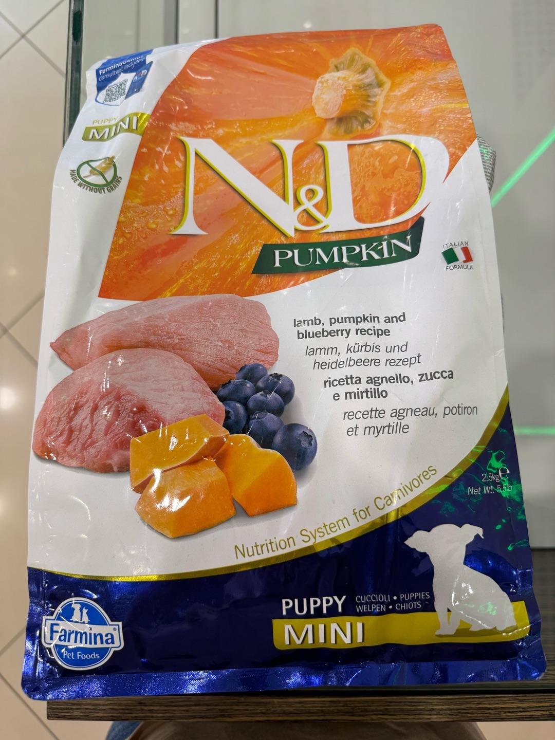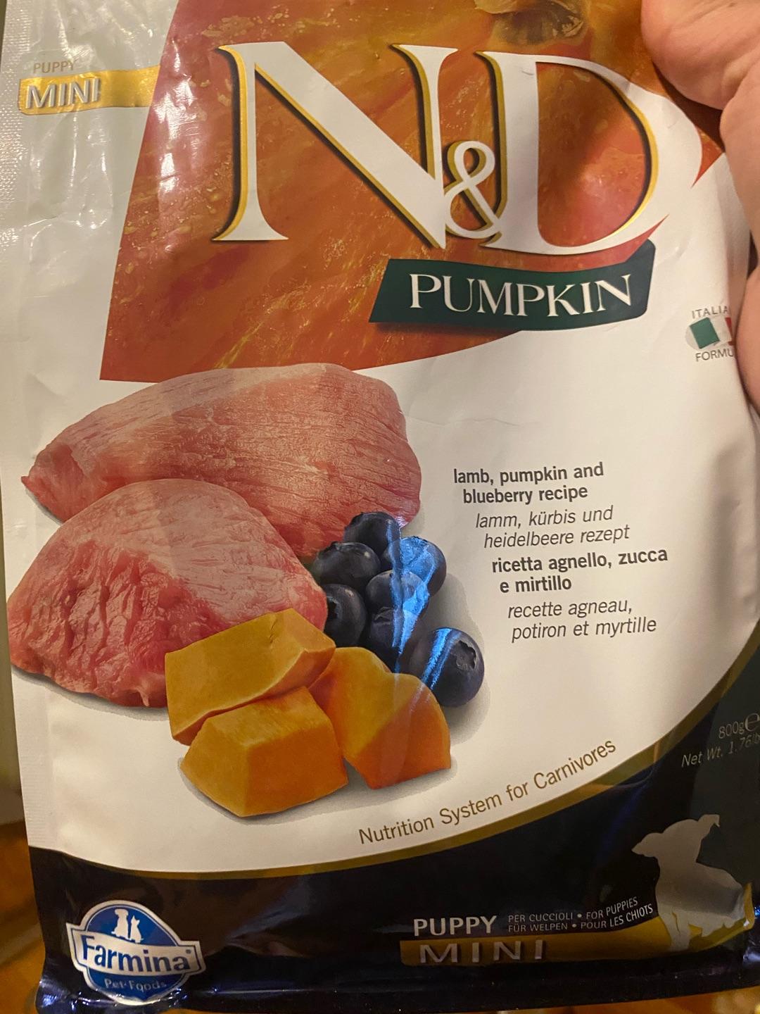 Корм для собак Фармина Ягненок, тыква, черника. Полнорационное питание для щенков, беременных и кормящих собак.