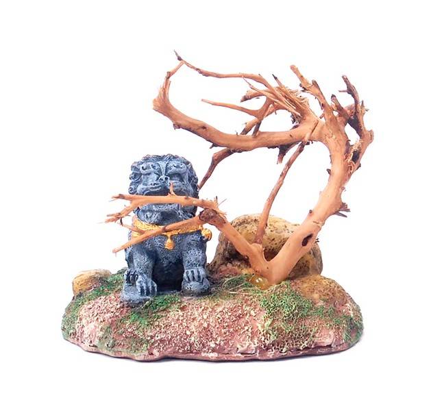 Fauna Декорация ДЕРЕВО И ЛЕВ 9х6,5х8см уникальное изделие для декора аквариума, в котором сочетается современный пластик и натуральное дерево. Оригинальная композиция в восточном стиле позволит создать необычный интерьер аквариума, придаст загадочность и яркость. Натуральное дерево абсолютно безвредно для обитателей аквариума.