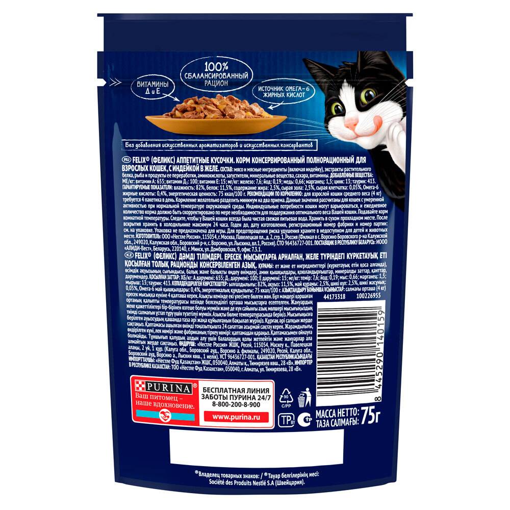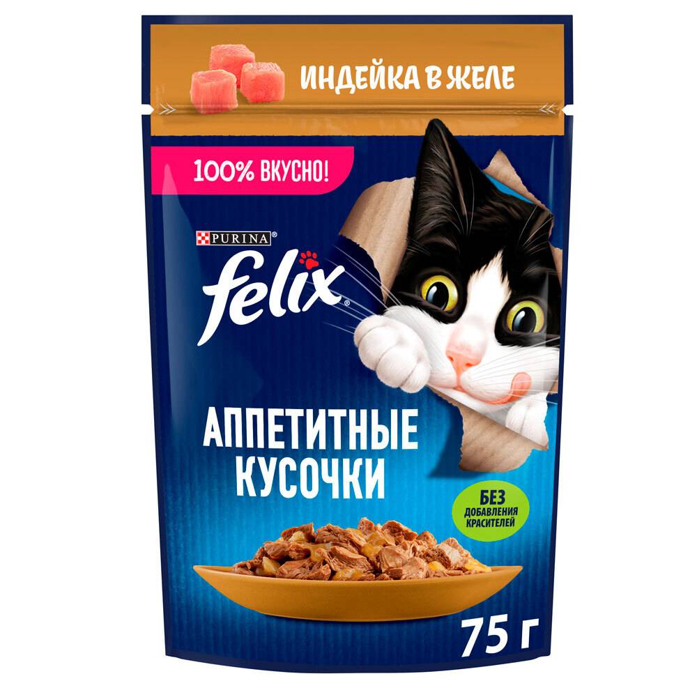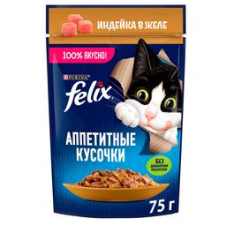 Felix Влажный корм (пауч) для взрослых кошек Аппетитные кусочки, с индейкой в желе, 75 гр.