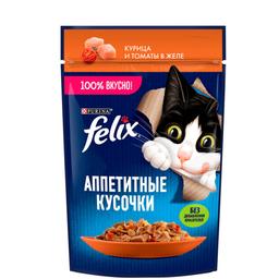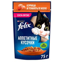 Felix Влажный корм (пауч) для взрослых кошек Аппетитные кусочки, с курицей и томатами в желе, 75 гр.