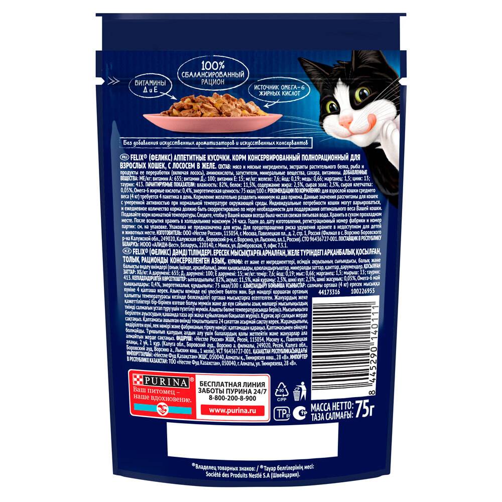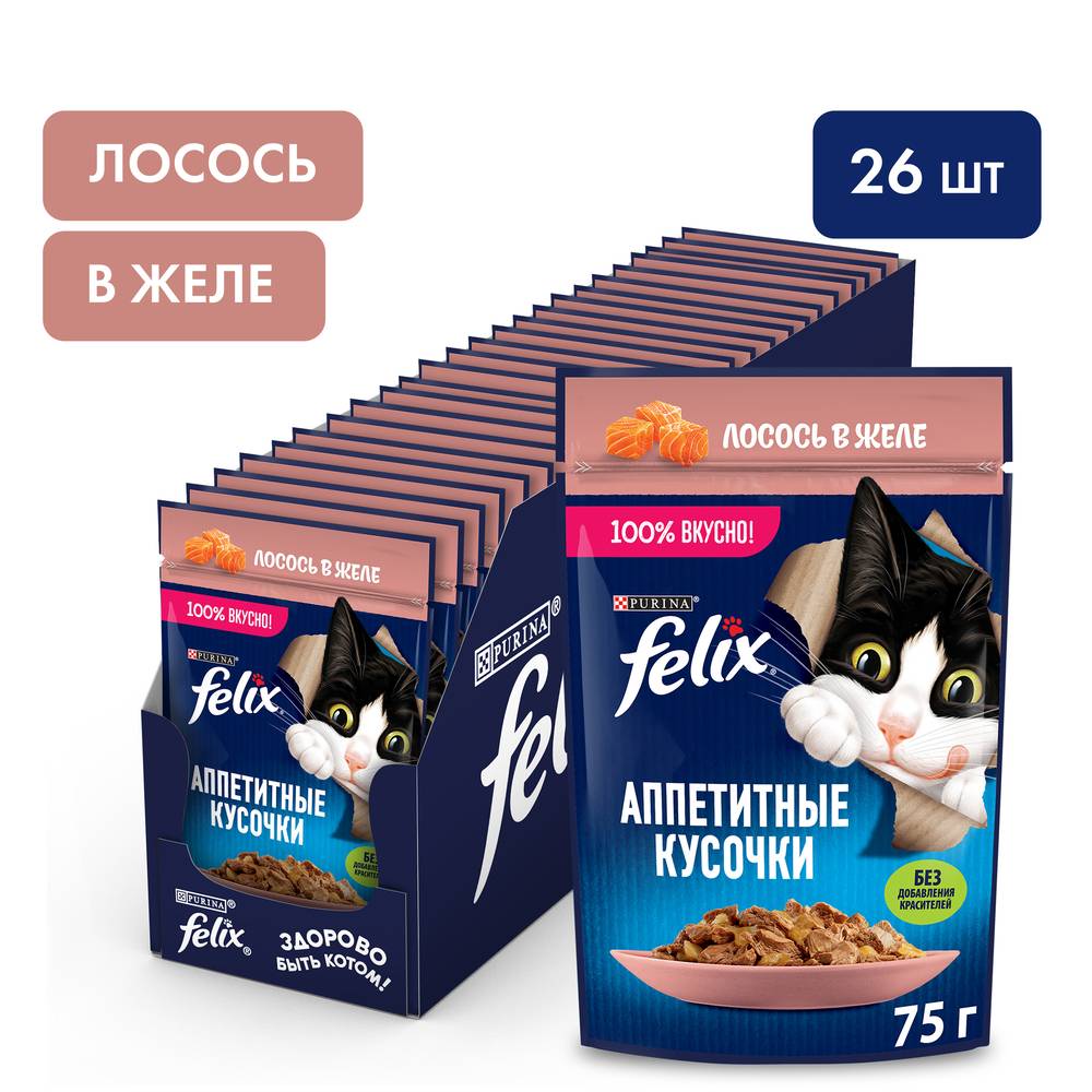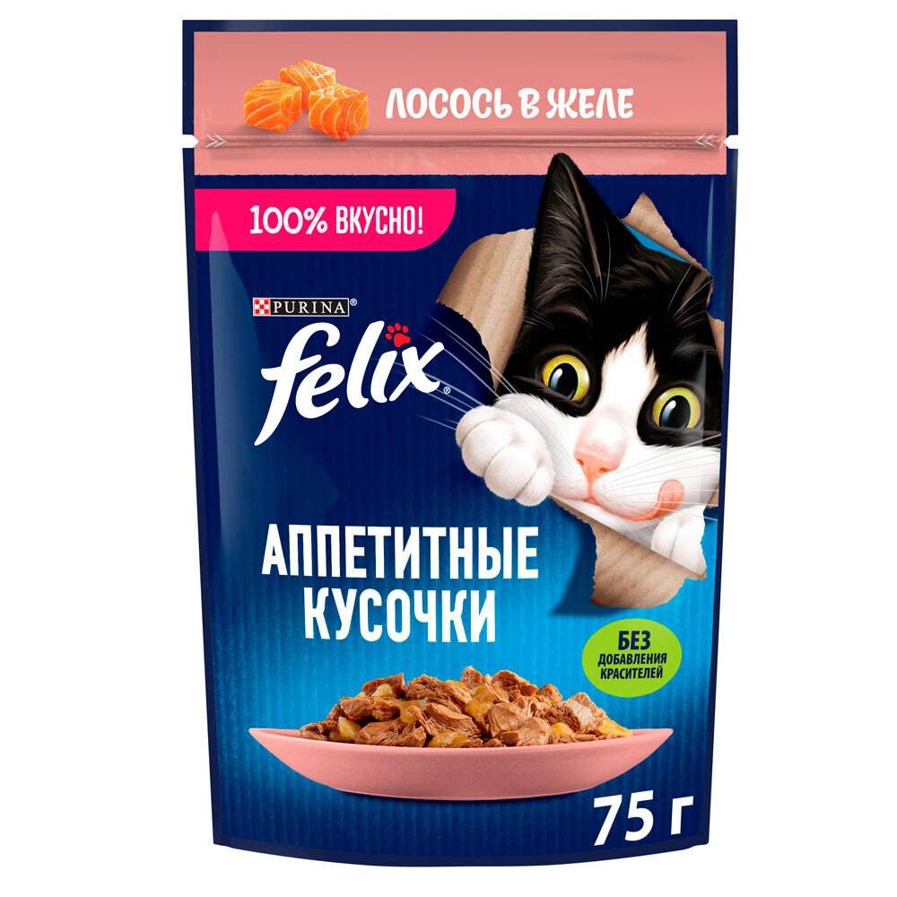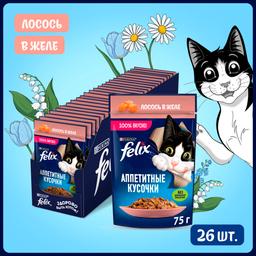 Felix Влажный корм (пауч) для взрослых кошек Аппетитные кусочки, с лососем в желе, 75 гр.
