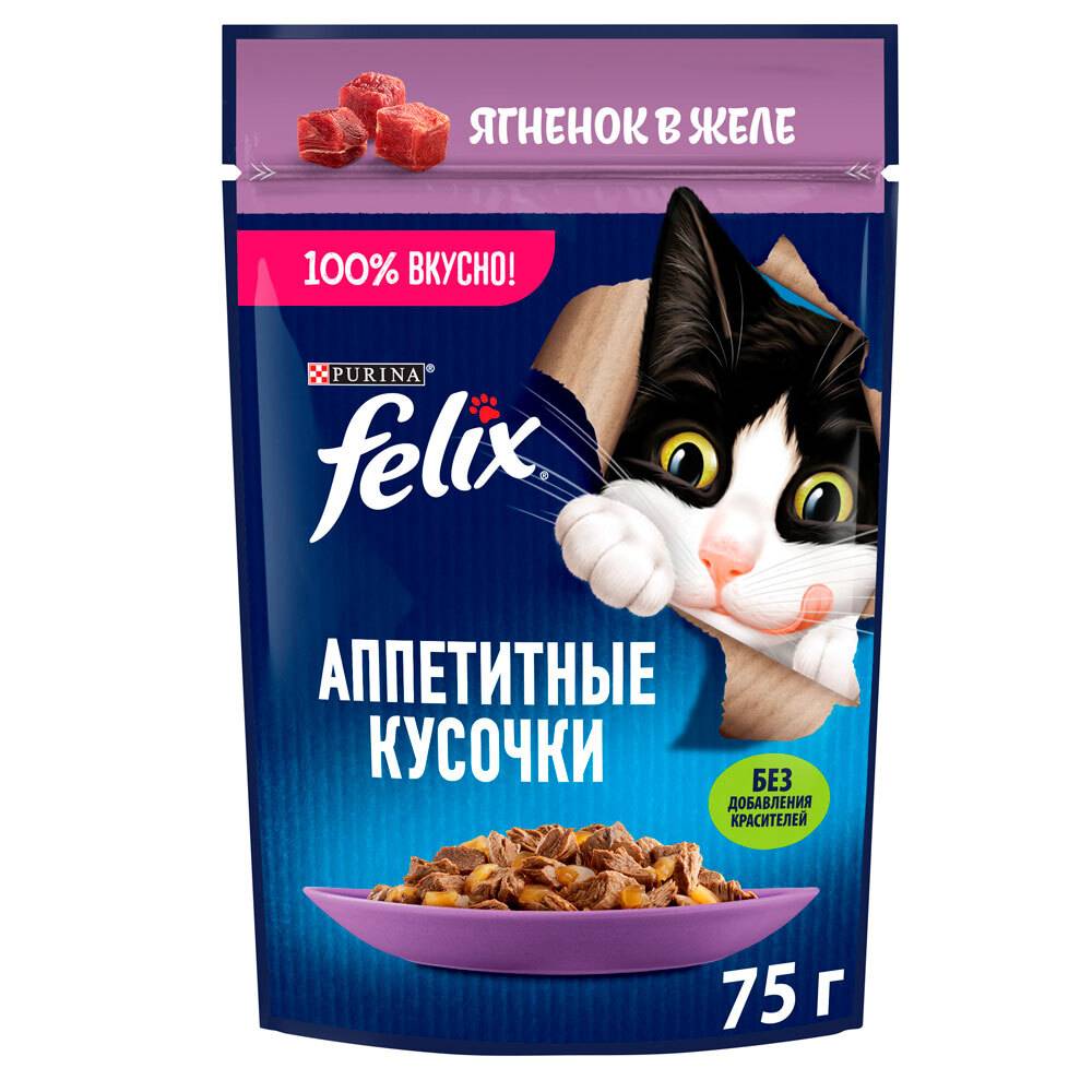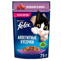 Felix Влажный корм (пауч) для взрослых кошек Аппетитные кусочки, с ягненком в желе, 75 гр.