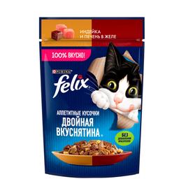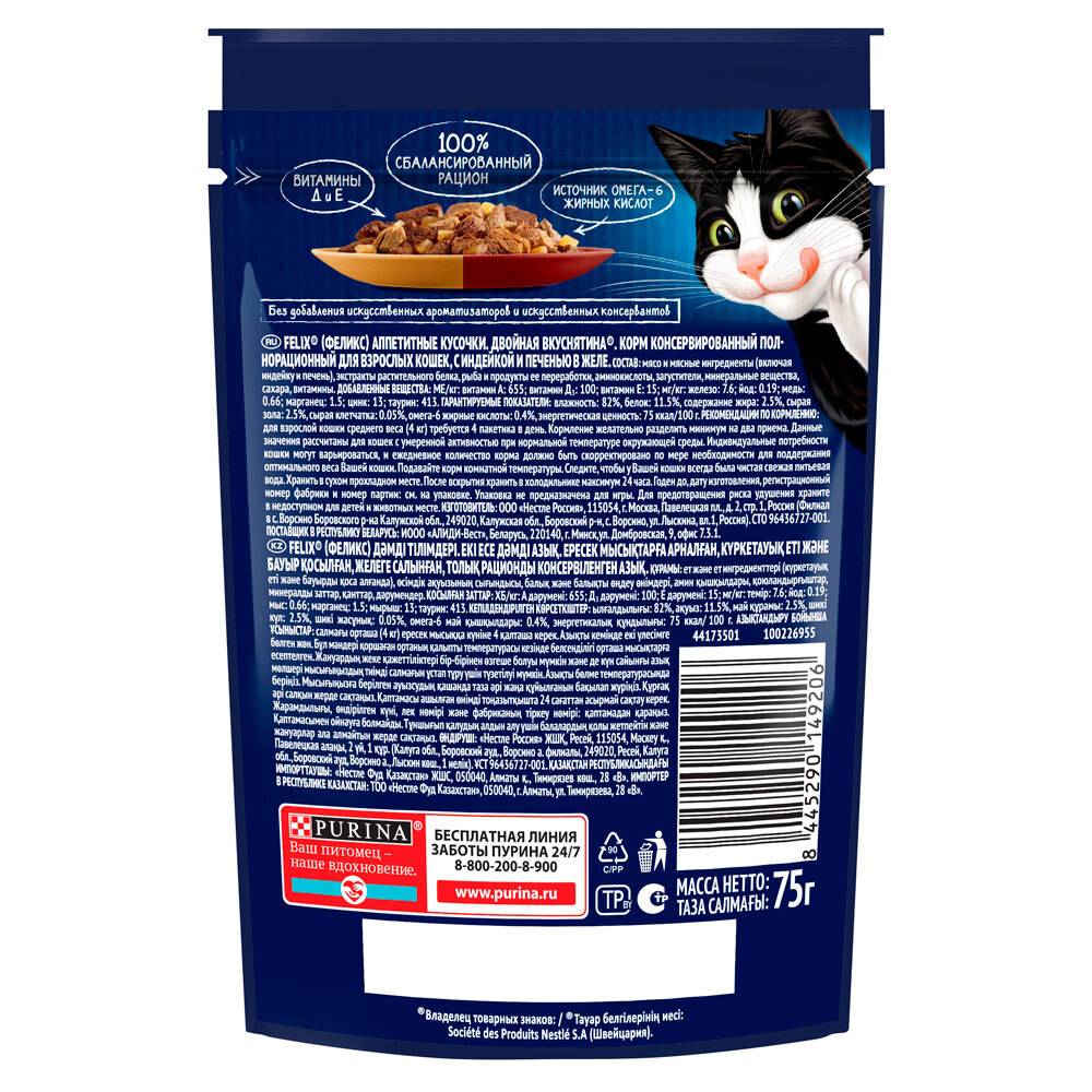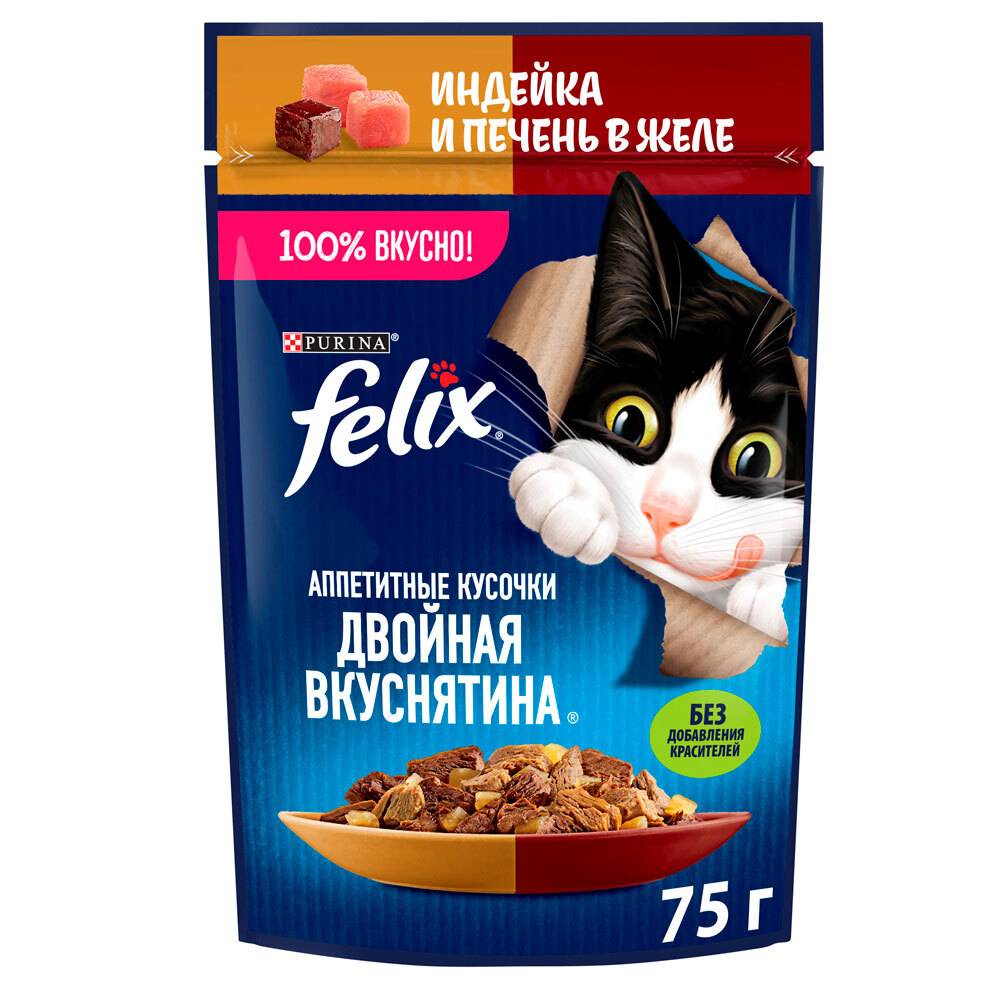 Felix Влажный корм (пауч) для взрослых кошек Двойная вкуснятина, с индейкой и печенью в желе, 75 гр.