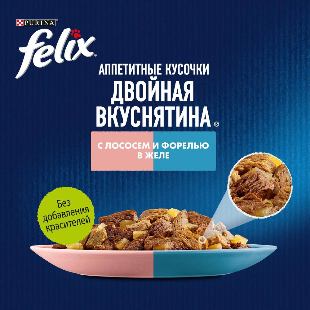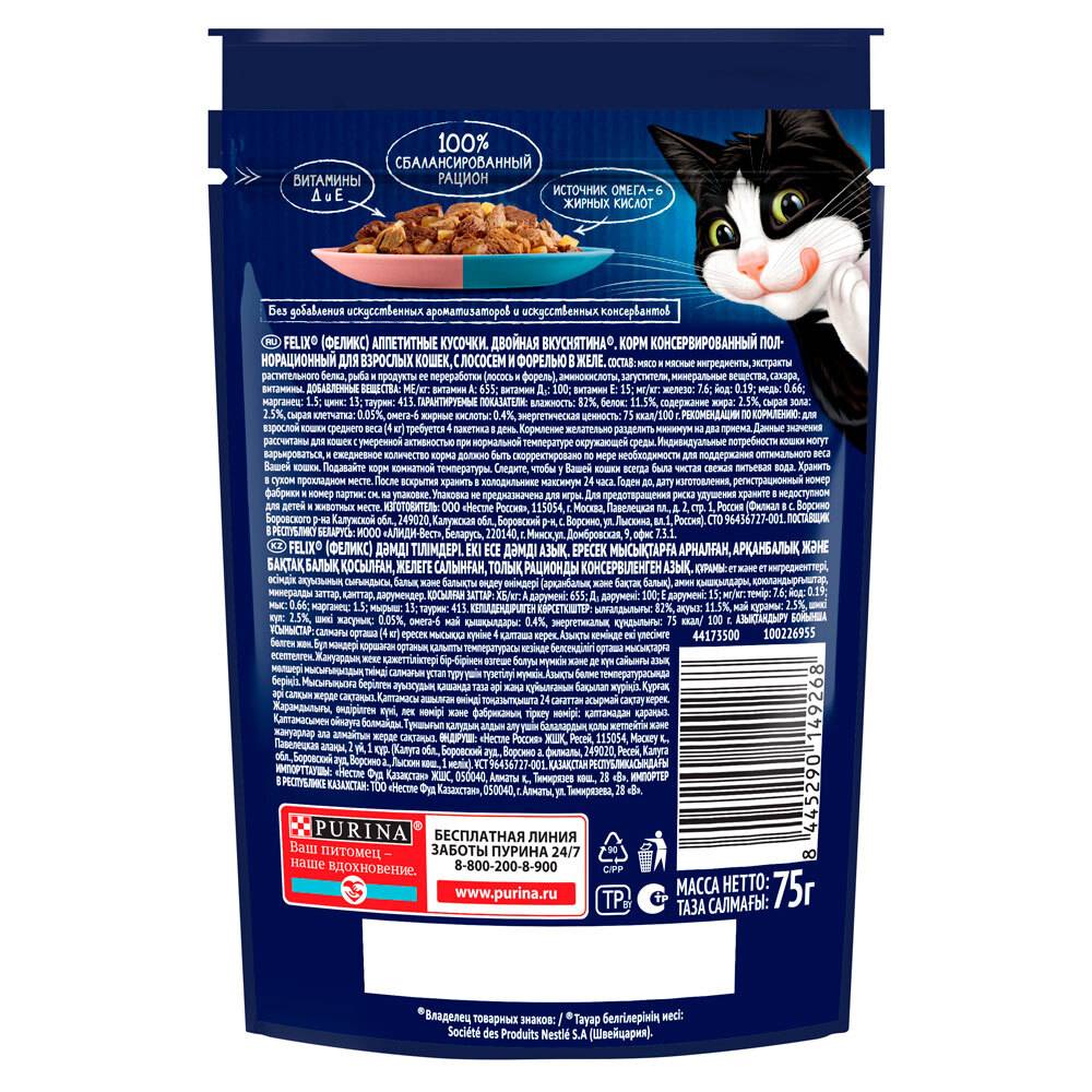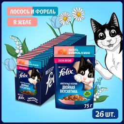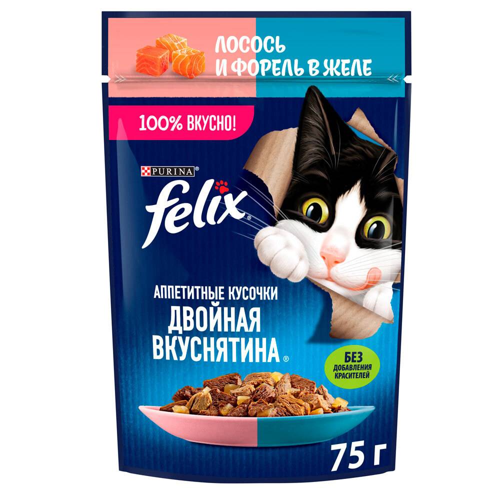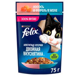 Felix Влажный корм (пауч) для взрослых кошек Двойная вкуснятина, с лососем и форелью в желе, 75 гр.