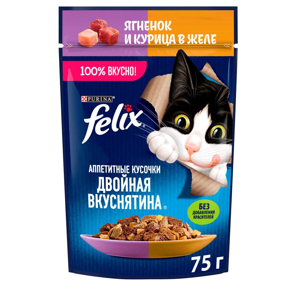 Felix Влажный корм (пауч) для взрослых кошек Двойная вкуснятина, с ягненком и курицей в желе, 75 гр.