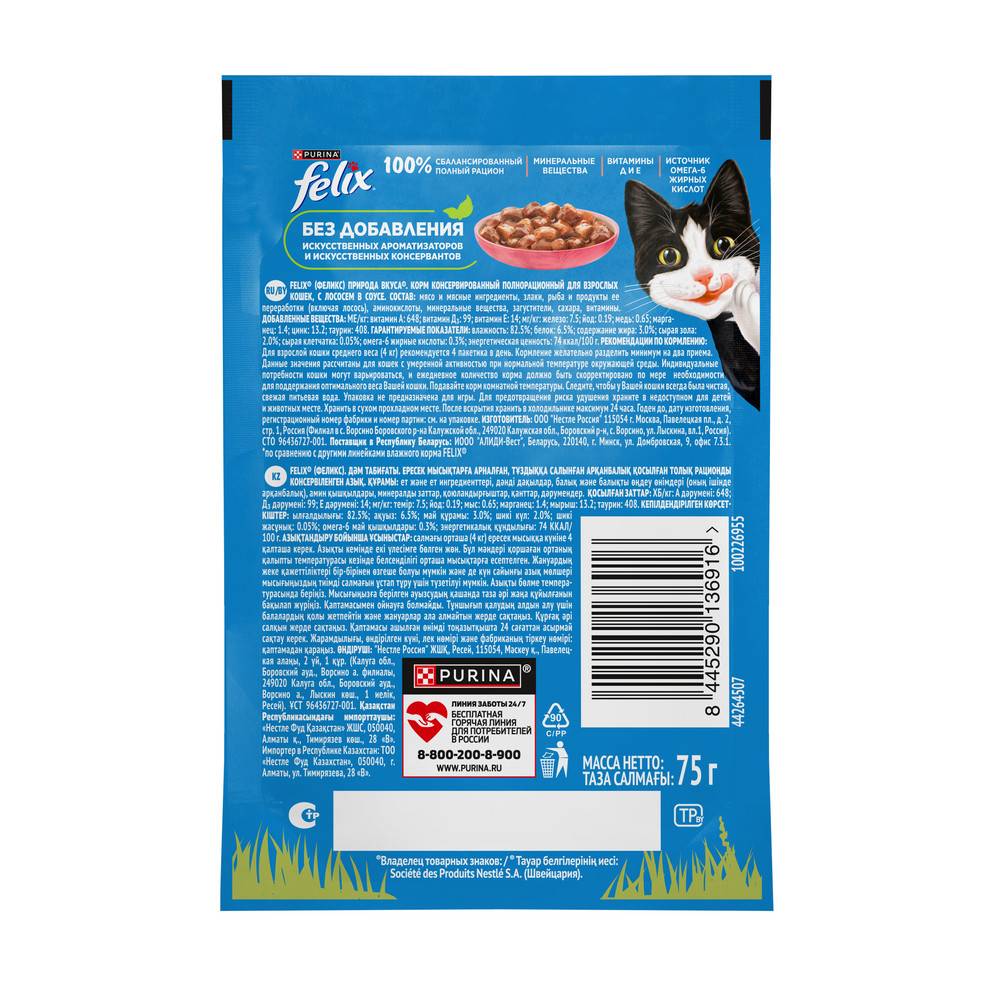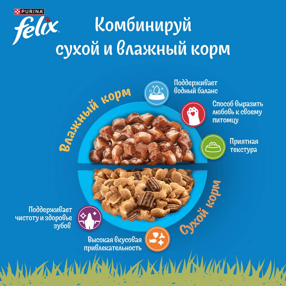 • Корм для кошек Felix не содержит искусственных красителей.