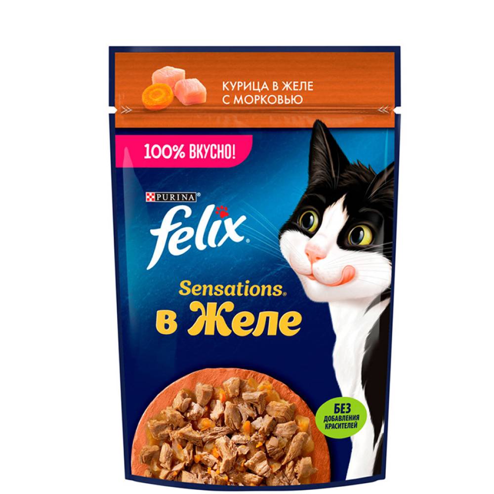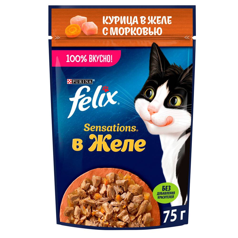Felix Sensations Влажный корм (пауч) для взрослых кошек, с курицей в желе с морковью, 75 гр.