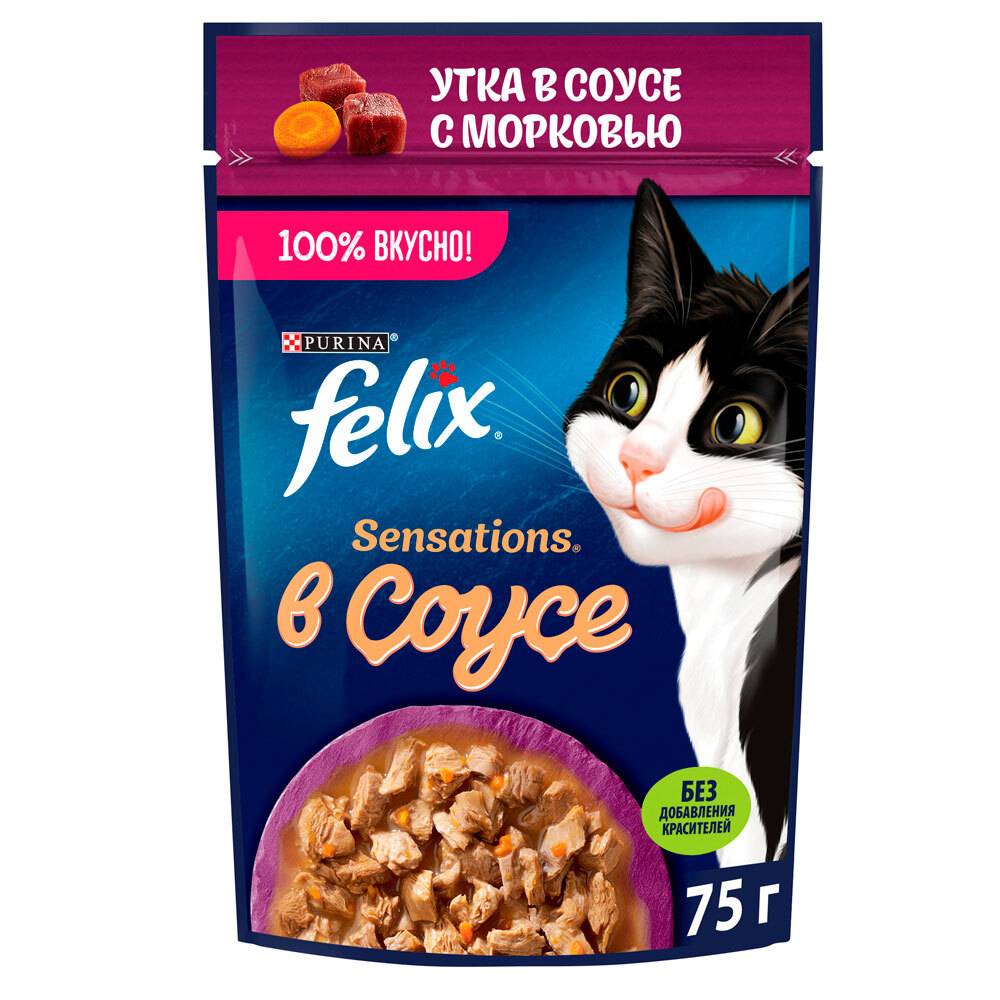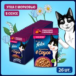 Felix Sensations Влажный корм (пауч) для взрослых кошек, с уткой в соусе с морковью, 75 гр.