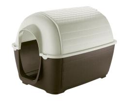 - Будка имеет большое отверстие для входа и основание определённой формы, обеспечивающее прекрасную изоляцию от земли.