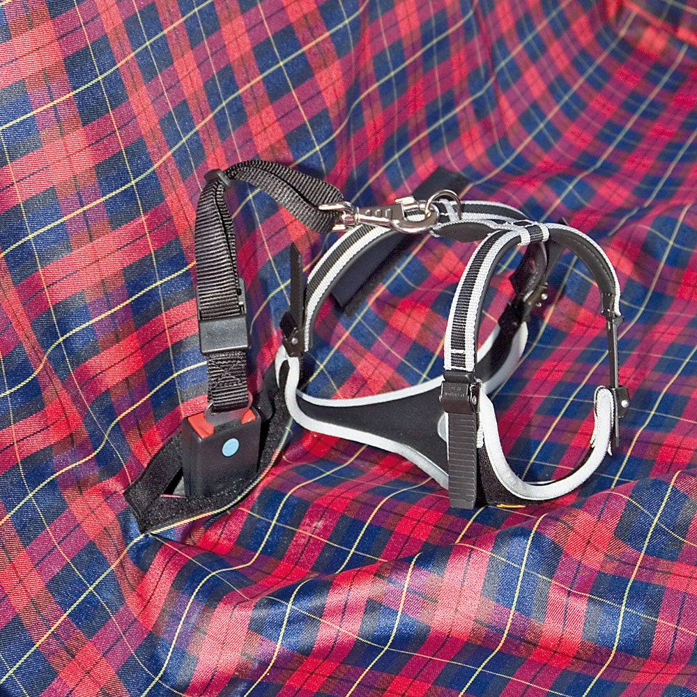 - Удобные центральные отверстия для пристегивания шлейки к креплению для ремня безопасности