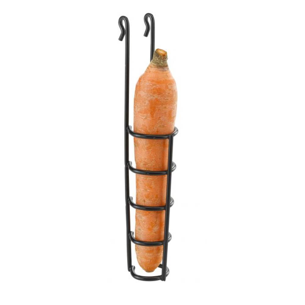 - Окрашенная проволока скручена по форме морковки, благодаря чему в такую конструкцию очень легко и просто поместить сам овощ.