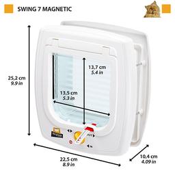 Для кошек и щенков мы рекомендуем модели Swing 1, 3 и 5. Для средних и больших собак, а также для крупных кошек наиболее подходящими будут модели Swing 11 и 15. Модель Swing 7 с магнитным замком подойдет для кошек. Модель дверцы для кошек и собак SWING 7 MAGNETIC оснащена магнитным ключом в виде декоративного брелочка, который крепится к ошейнику Вашего питомца. Магнитный ключ позволяет животному легко открыть дверцу, просто приблизившись к ней. Устройство особенно полезно тем, что позволяет входить в дом исключительно Вашему питомцу. Таким образом, Вы защищены от риска встретить незваных гостей в своём доме.