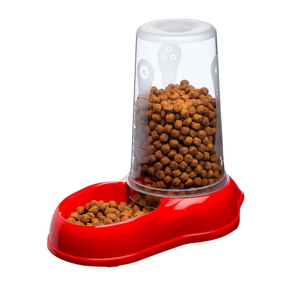 Azimut — механическая пластиковая кормушка для сухого корма и воды для кошек и собак. Оснащена антискользящим покрытием и имеет прозрачный резервуар со шкалой в литрах. Благодаря специальной форме кормушку удобно брать, это идеальный аксессуар для кошек, щенков и маленьких собак. В наличии два размера: 0,6 л и 1,5 л.