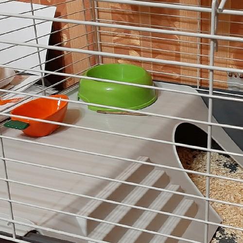 Приобрела для 2х морских свинок, клетка прочная, просторная, хорошая поилка и менник. Пока не пойму удобно ли им лазить на 2й этаж.Комментарий