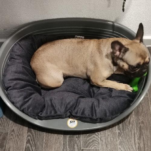 Отличный лежак. Хватит надолго. До него сменили 3 лежака: рвались, трудно стирать. Этот таз достаточно ополоснуть водой. Отдельно покупать подушки выгоднее и их удобнее стирать.