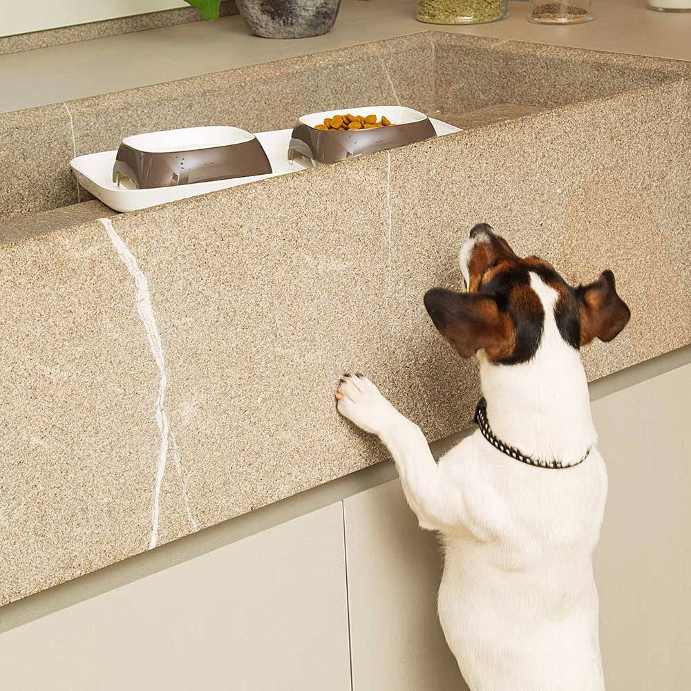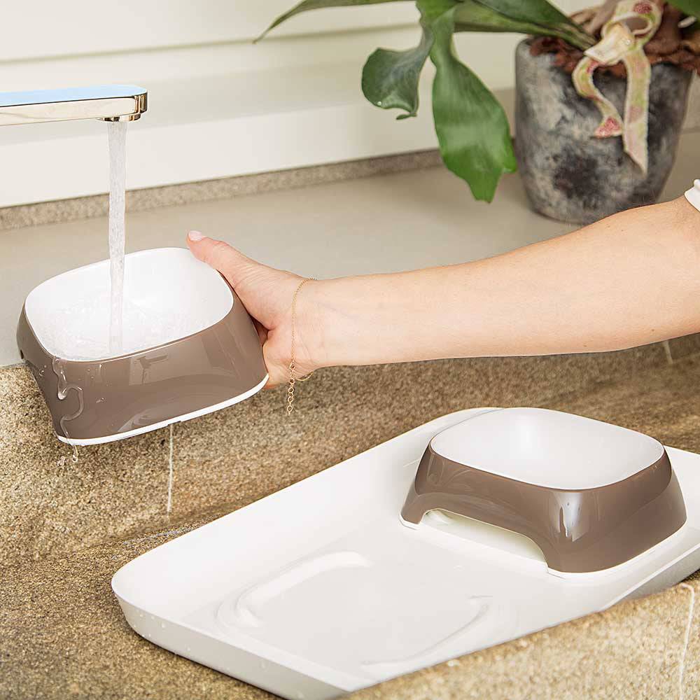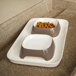 - Противоскользящее основание подноса и мисок для обеспечения устойчивости