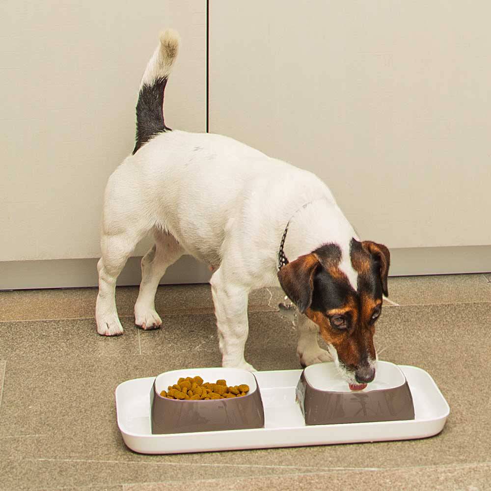 - Доступны 2 размера: поднос с мисками объёмом 0,4 л и 0,8 л
