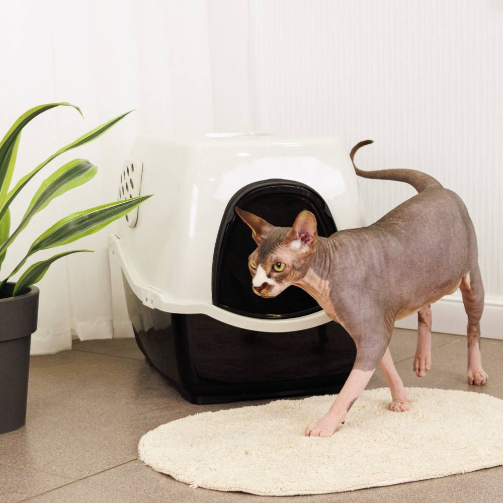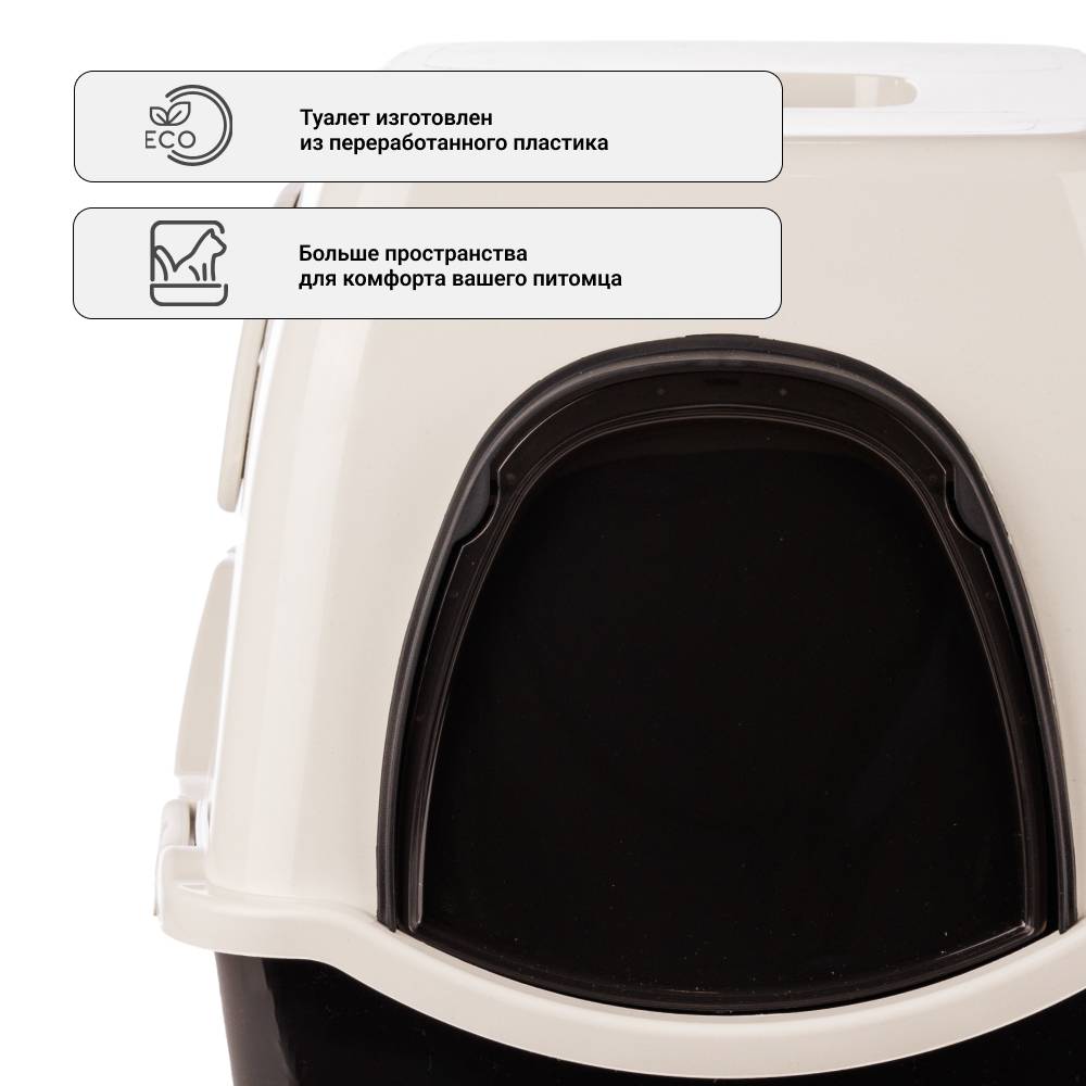 • Подвижная передняя створка позволяет животному самостоятельно пользоваться туалетом.