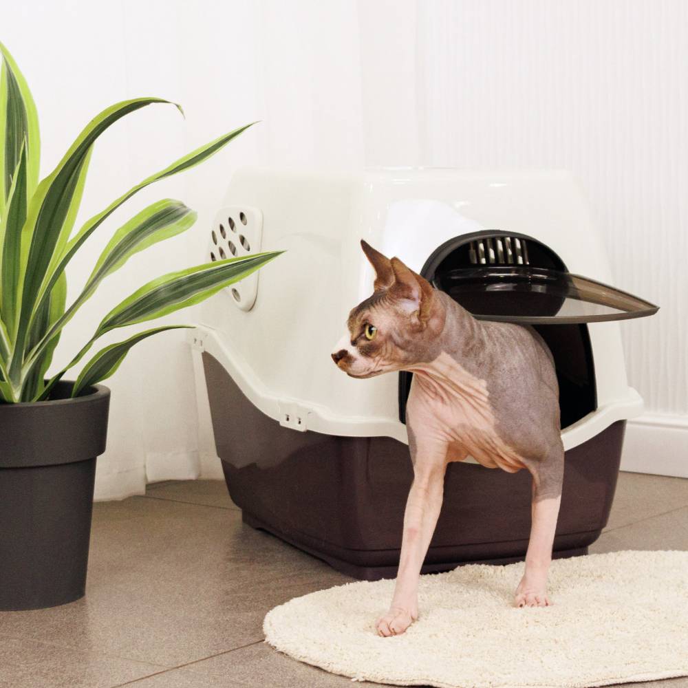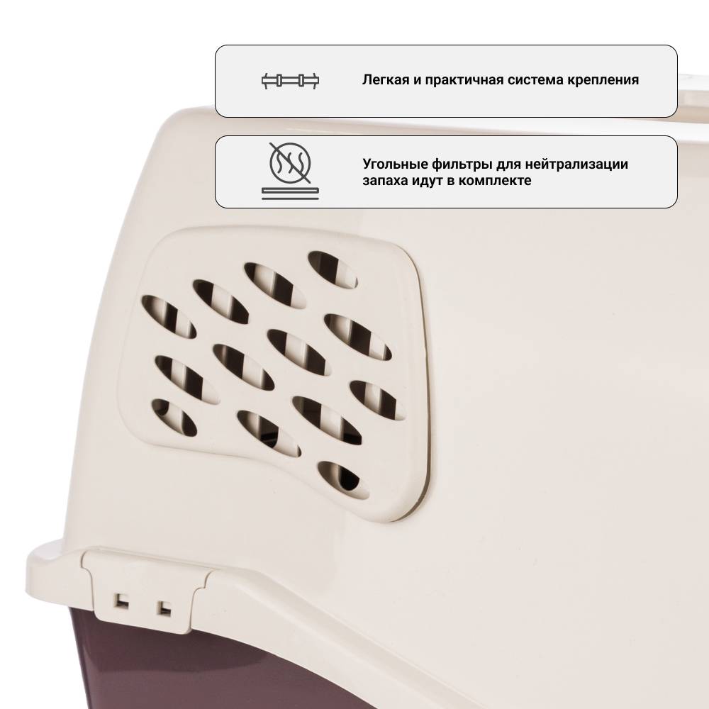 - Подвижная передняя створка позволяет животному самостоятельно пользоваться туалетом.