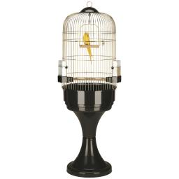 Покрытие решетки с металлическим эффектом, похожим на латунь, хорошо сочетается с темным основанием, оснащенным двумя поддонами для сбора мусора. На дне клетки находится съемная защитная решетка, предохраняющая лапы вашей птицы от соприкосновения с остатками еды и другими отходами.