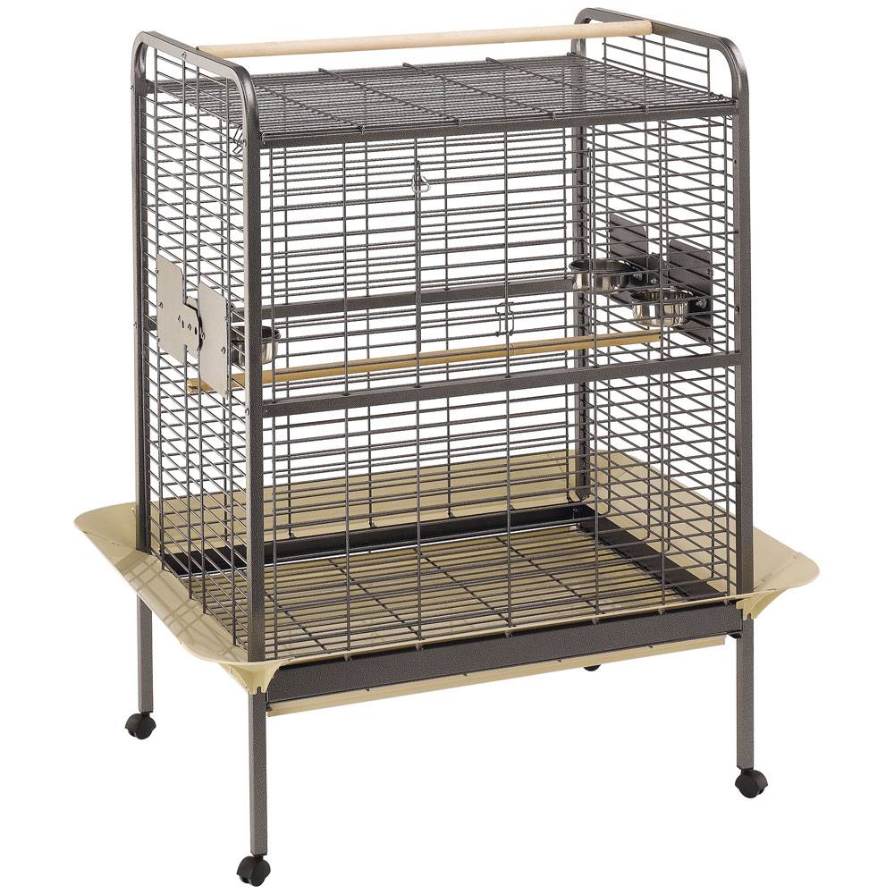 Вольер EXPERT 100 для крупных попугаев. Эта клетка идеально подходит для заводчиков и любителей попугаев! Клетки Expert имеют цельную металлическую рамку и очень толстую решетку диаметром 4-5 мм с покрытием, устойчивым к царапинам. Выпускается 3-х размеров: 70, 80 и 100. Спереди расположена большая дверка с надежным замком и крючком. Та же система используется на боковых защитных панелях, к которым крепятся поворотные кормушки. Они позволяют добавлять корм снаружи и оборудованы защитными панелями, не позволяющими птице вытолкнуть их наружу. Благодаря полностью открывающейся крыше ваш попугай сможет выбраться из клетки, полазить по металлической лесенке в верхней части или посидеть на верхней деревянной жердочке.