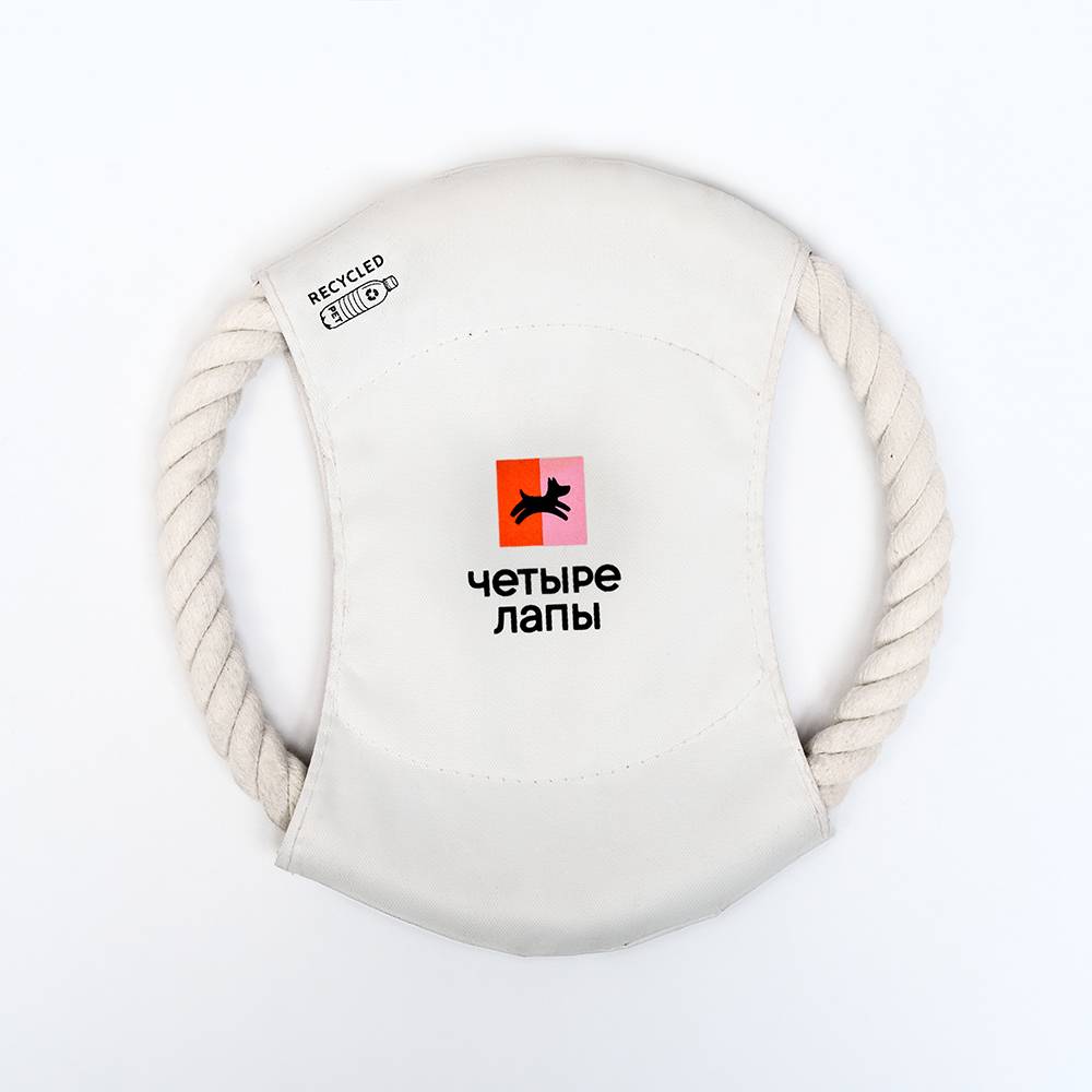 Игрушка для собак Фрисби с канатом и логотипом Четыре Лапы – отличный вариант для веселых игр с четвероногим другом.